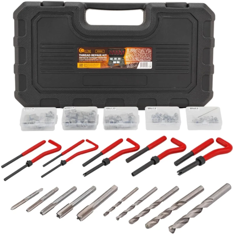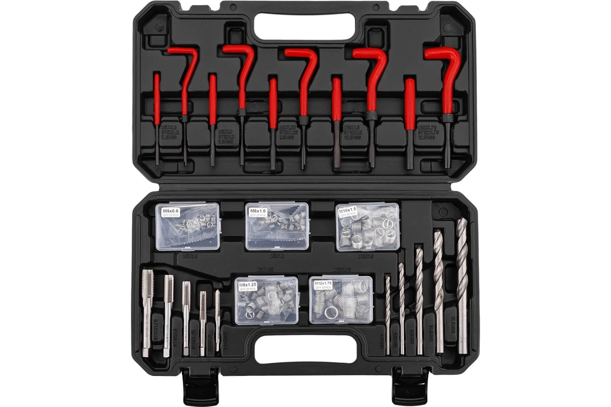 Профессиональный набор предназначен для восстановления поврежденной или изношенной внутренней метрической резьбы. Комплект позволяет вернуть узлам исходные параметры прочности без замены дорогостоящих деталей.