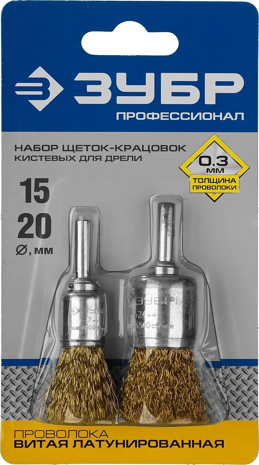 Набор кистевых щеток-крацовок для УШМ ЗУБР 2 шт 17 24 мм витая стальная латунированная проволока 0.3 мм