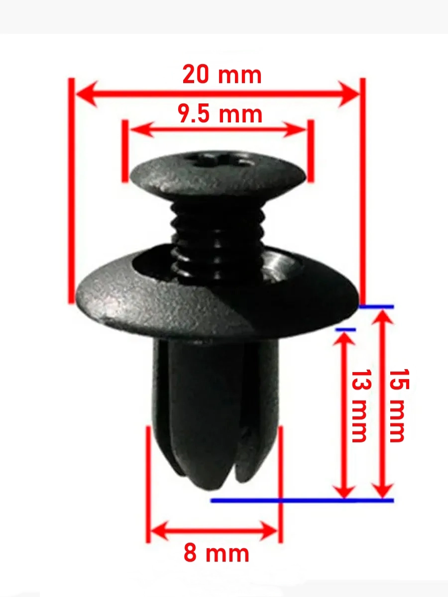 Универсальный комплект распорных фиксаторов предназначен для крепления элементов внутренней обшивки, деталей бамперов, подкрылков, дверных карт и защиты моторного отсека. Набор включает 6 наиболее востребованных типоразмеров, совместимых с большинством марок легковых и грузовых автомобилей.