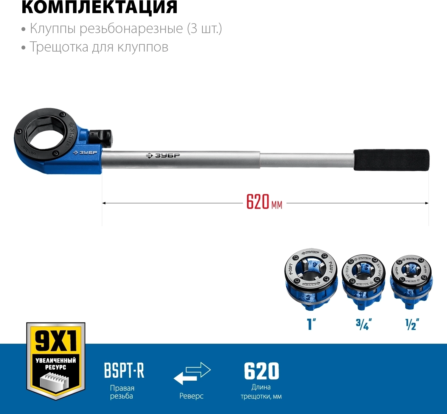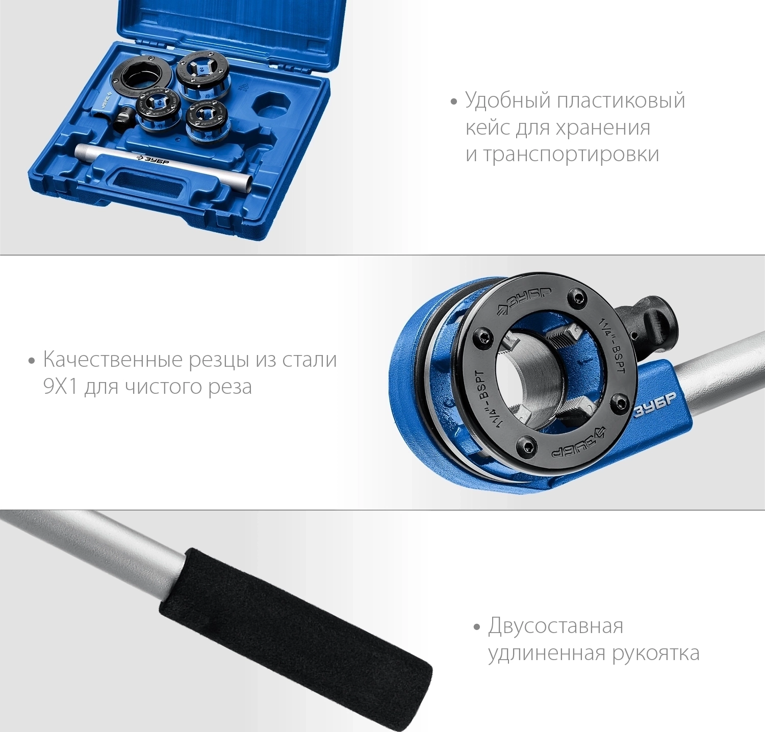 - Набор включает в себя популярные размеры клуппов для нарезания резьбы на металлических трубах