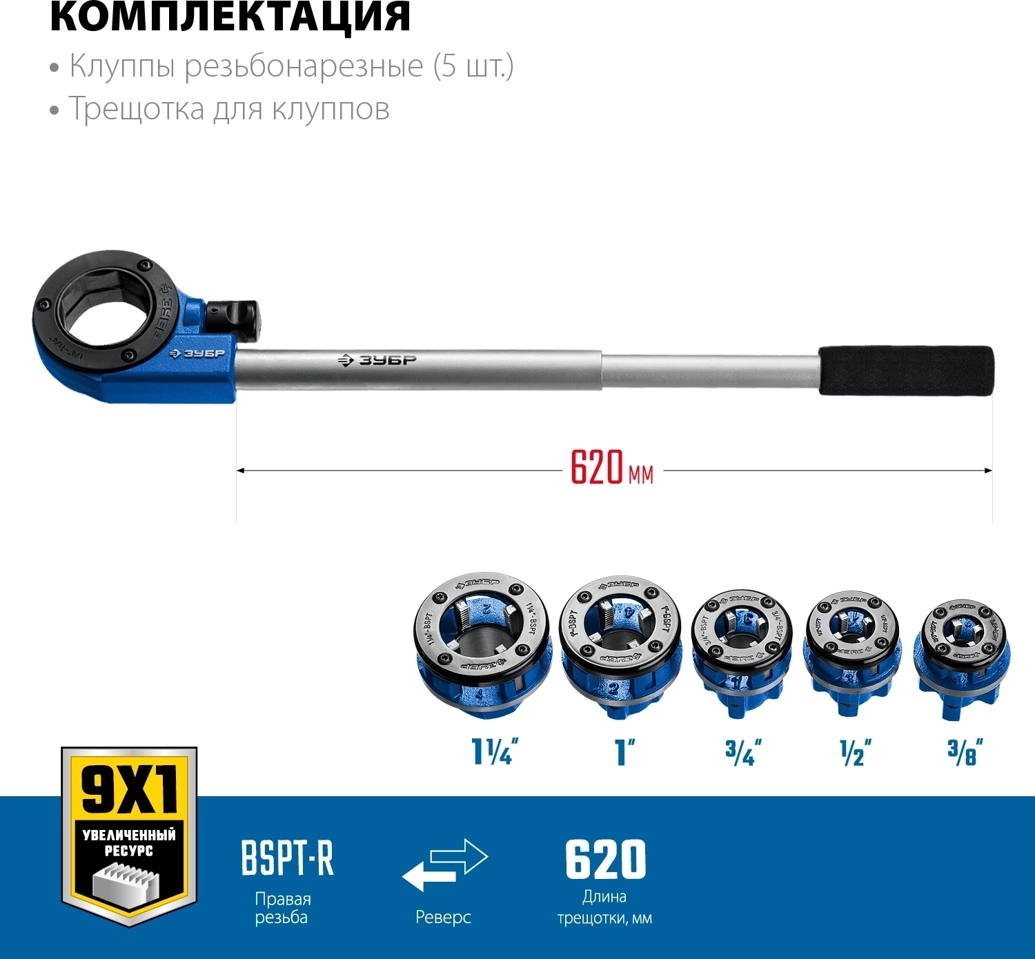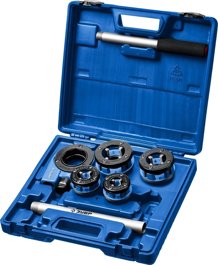 - Набор включает в себя популярные размеры клуппов для нарезания резьбы на металлических трубах