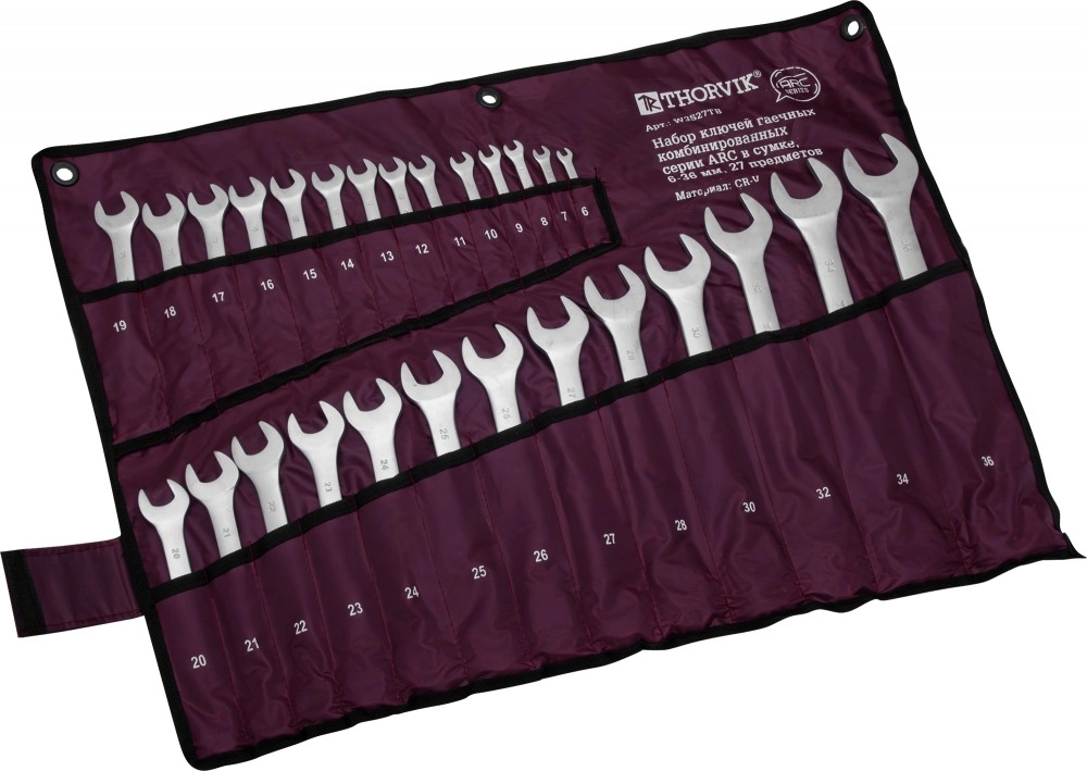 Набор ключей гаечных комбинированных Thorvik W3S27TB в сумке, 6-36 мм, 27 предметов