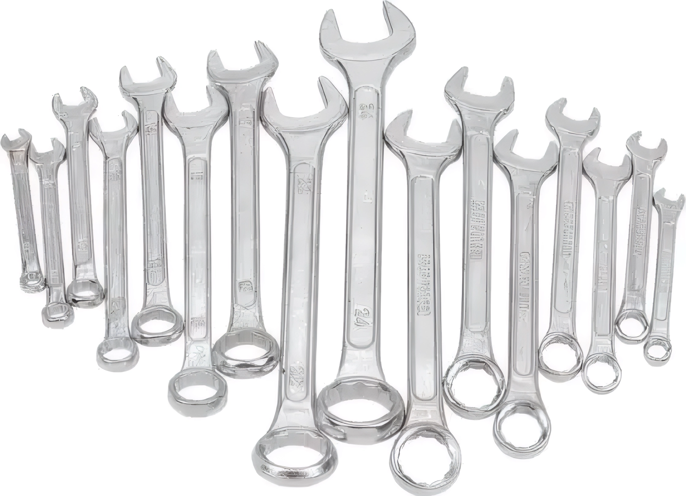 Набор комбинированных ключей поможет открутить/закрутить резьбовые соединения в любых условиях.