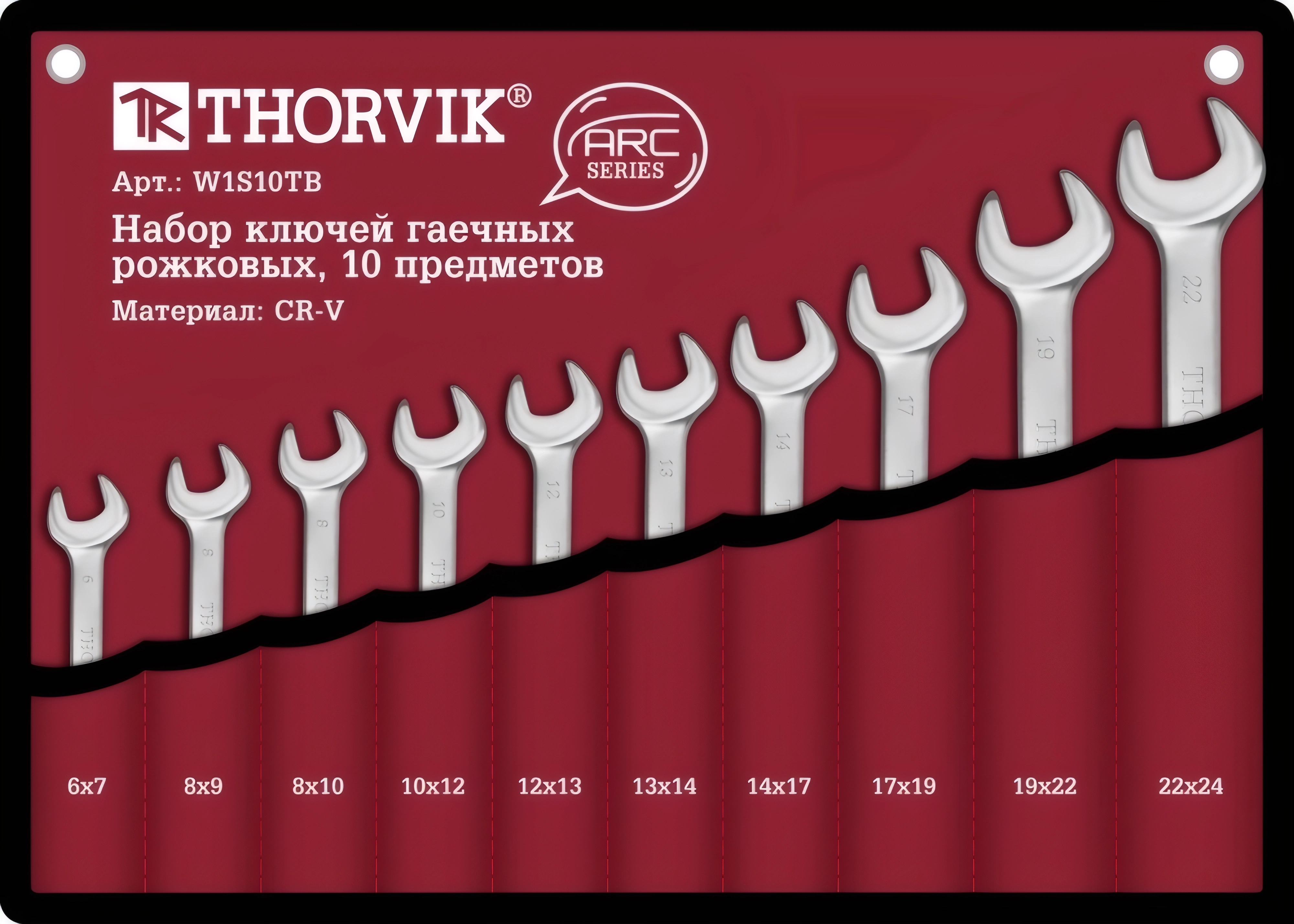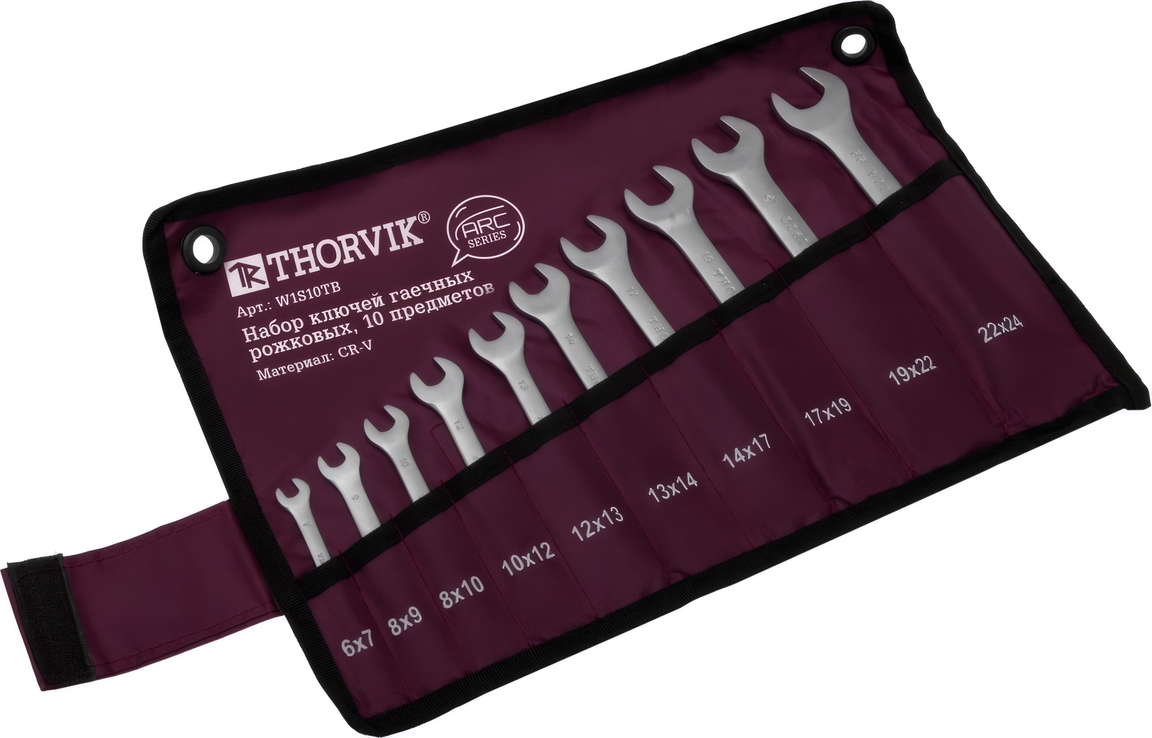 Набор ключей рожковых в сумке, 6-24 мм, 10 предметов THORVIK W1S10TB