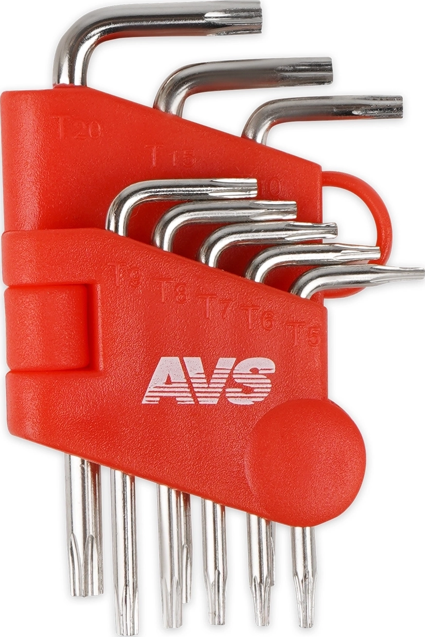 Набор ключей торцевых изогнутых TORX МИНИ с отверстием 8 предметов (T5-T20) AVS TXL-8H