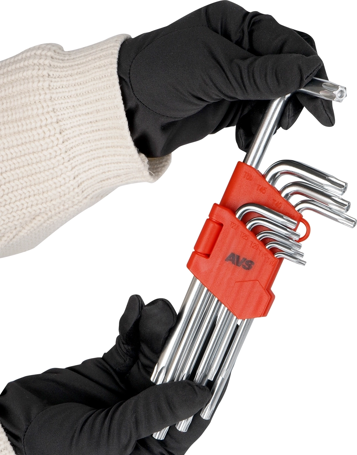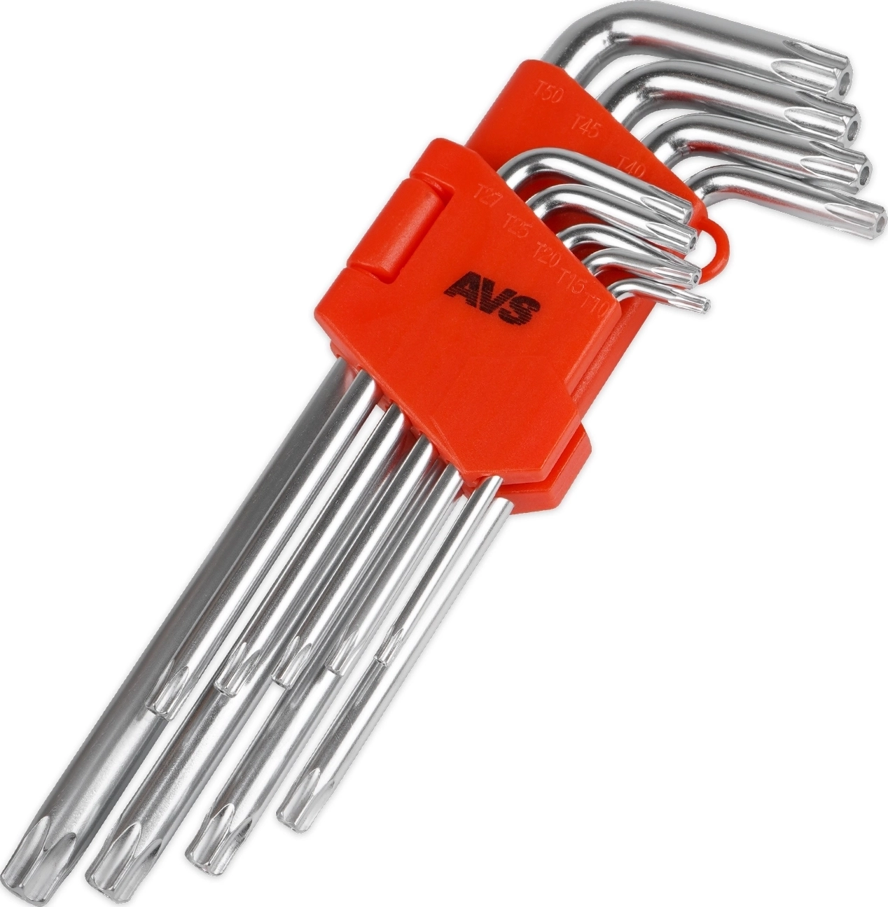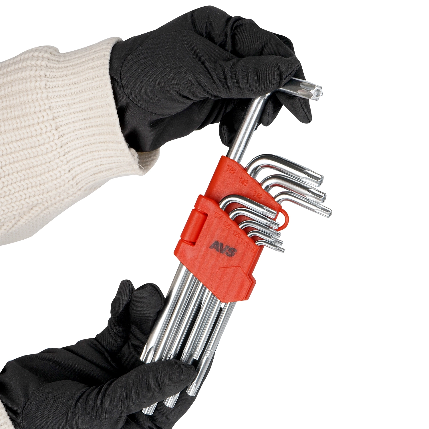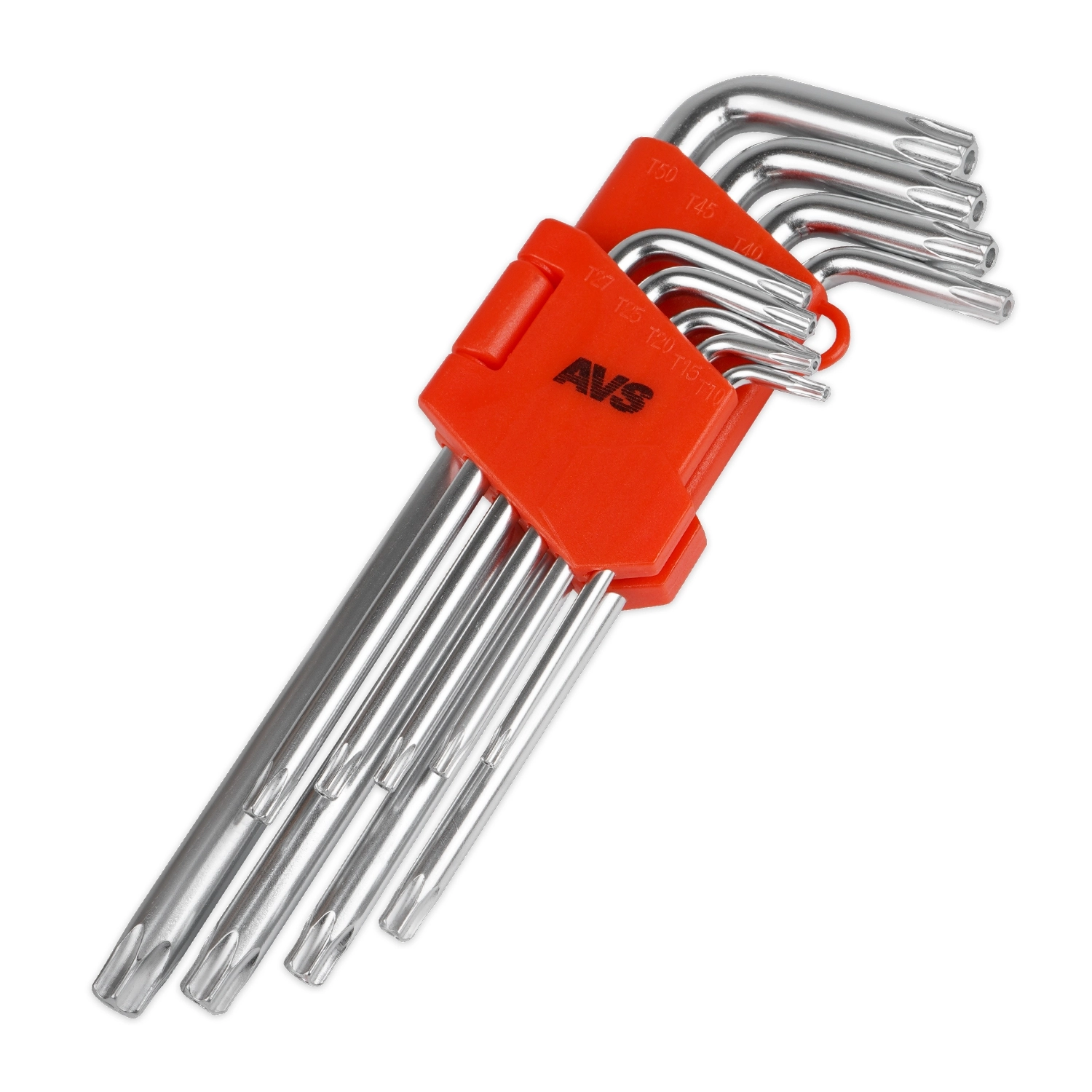 Набор ключей торцевых изогнутых TORX с отверстием АVS TXL-9H (T10-T50) 9 предметов - материал хромованадиевая сталь (CrV), покрытие матовое, твердость 48-52HRC