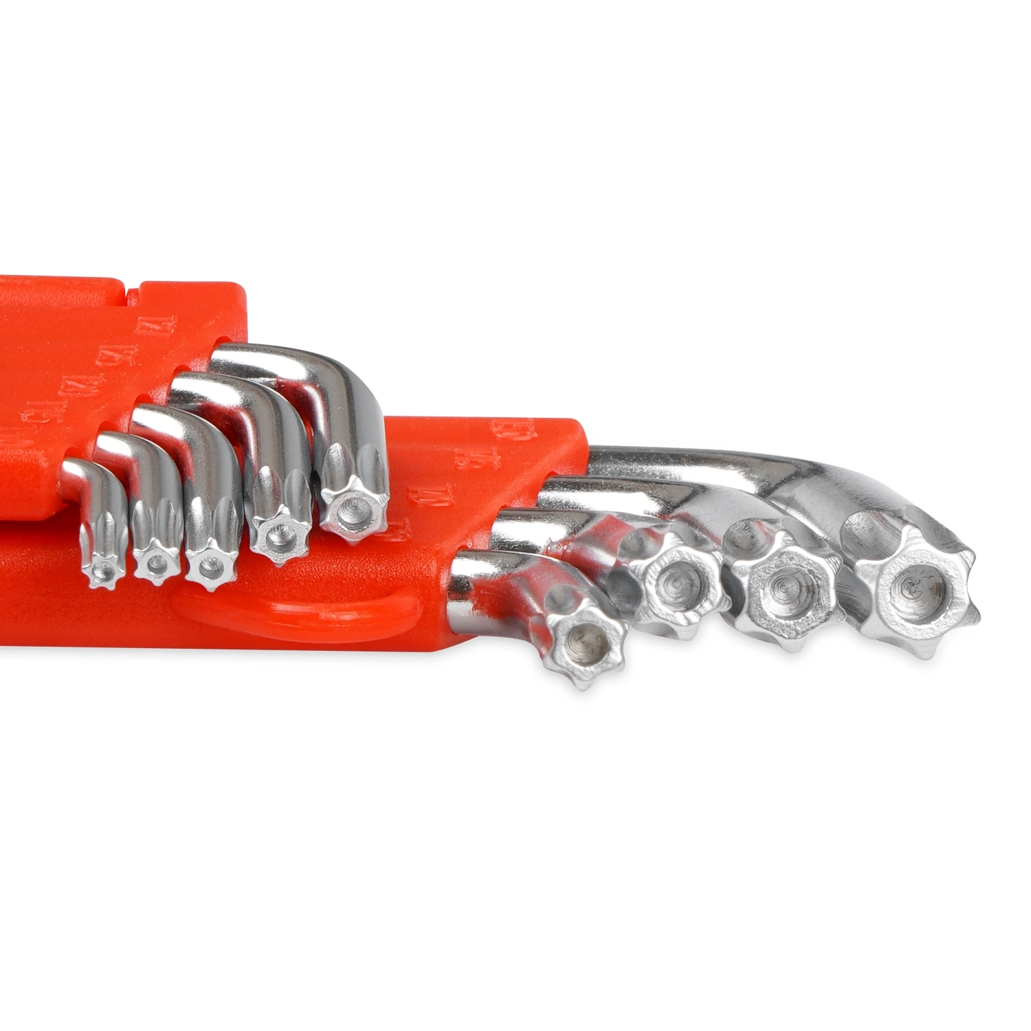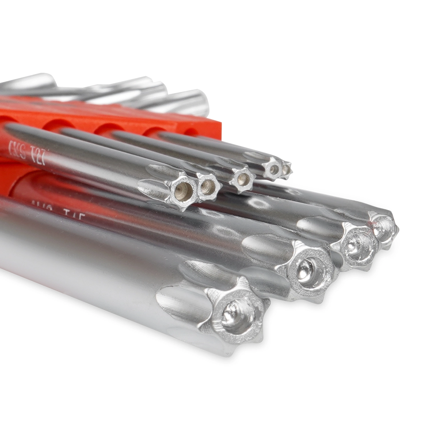 Набор состоит из Г-образных ключей TORX, в пластиковом держателе. Предназначен для работы с соединениями с шлицем TORX.