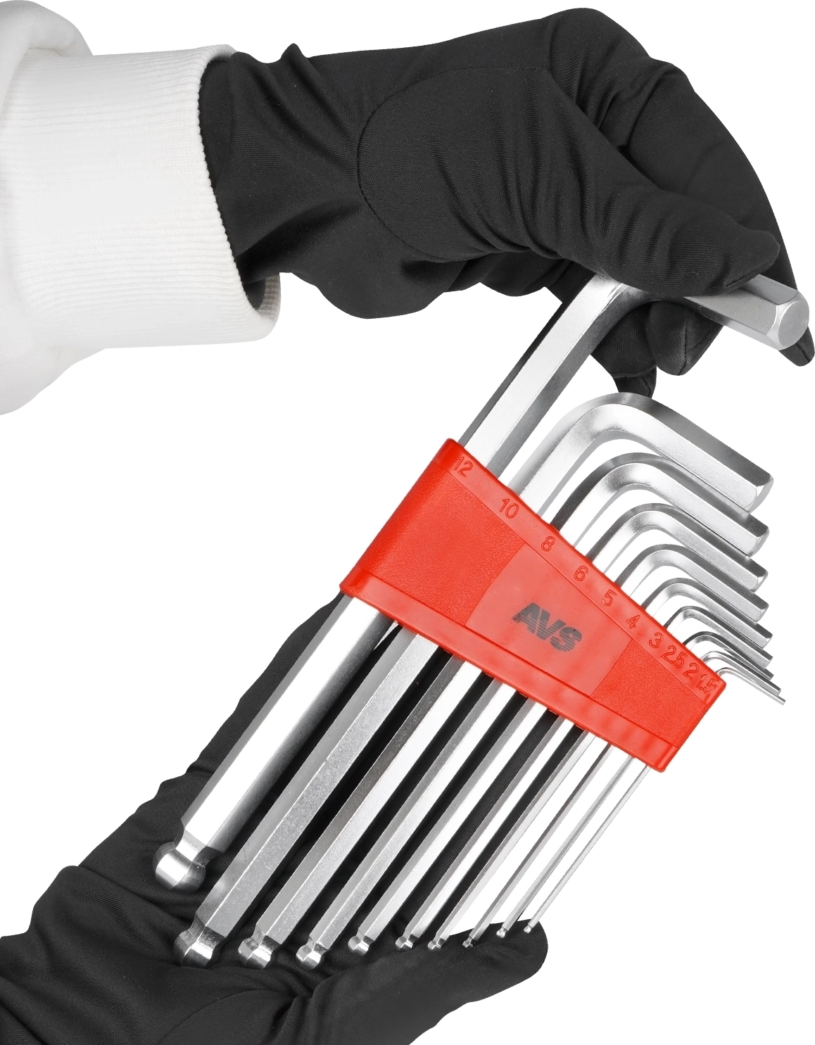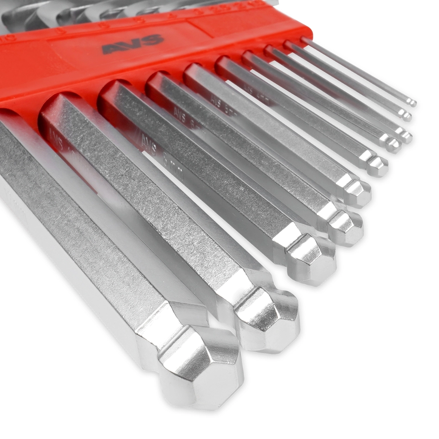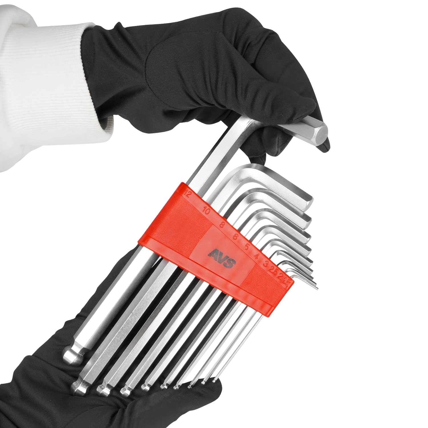 Набор ключей торцевых шестигранных AVS HKS-10B (1,5-12мм) шаровых 10 предметов - материал хромованадиевая сталь (CrV), покрытие матовое, твердость 48-52HRC