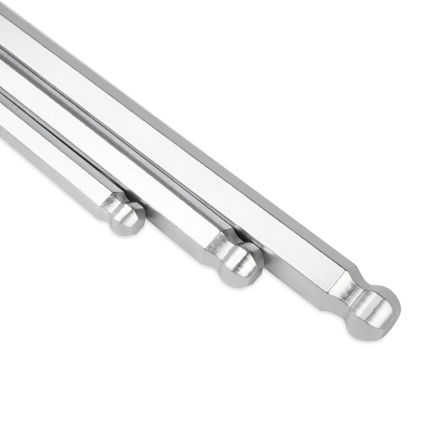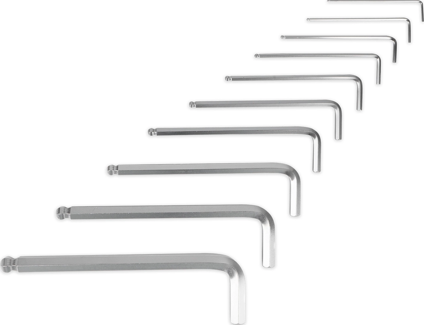 Набор состоит из Г-образных шестигранных шаровых ключей, в пластиковом держателе. Предназначен для работы с соединениями с шестигранным шлицем.