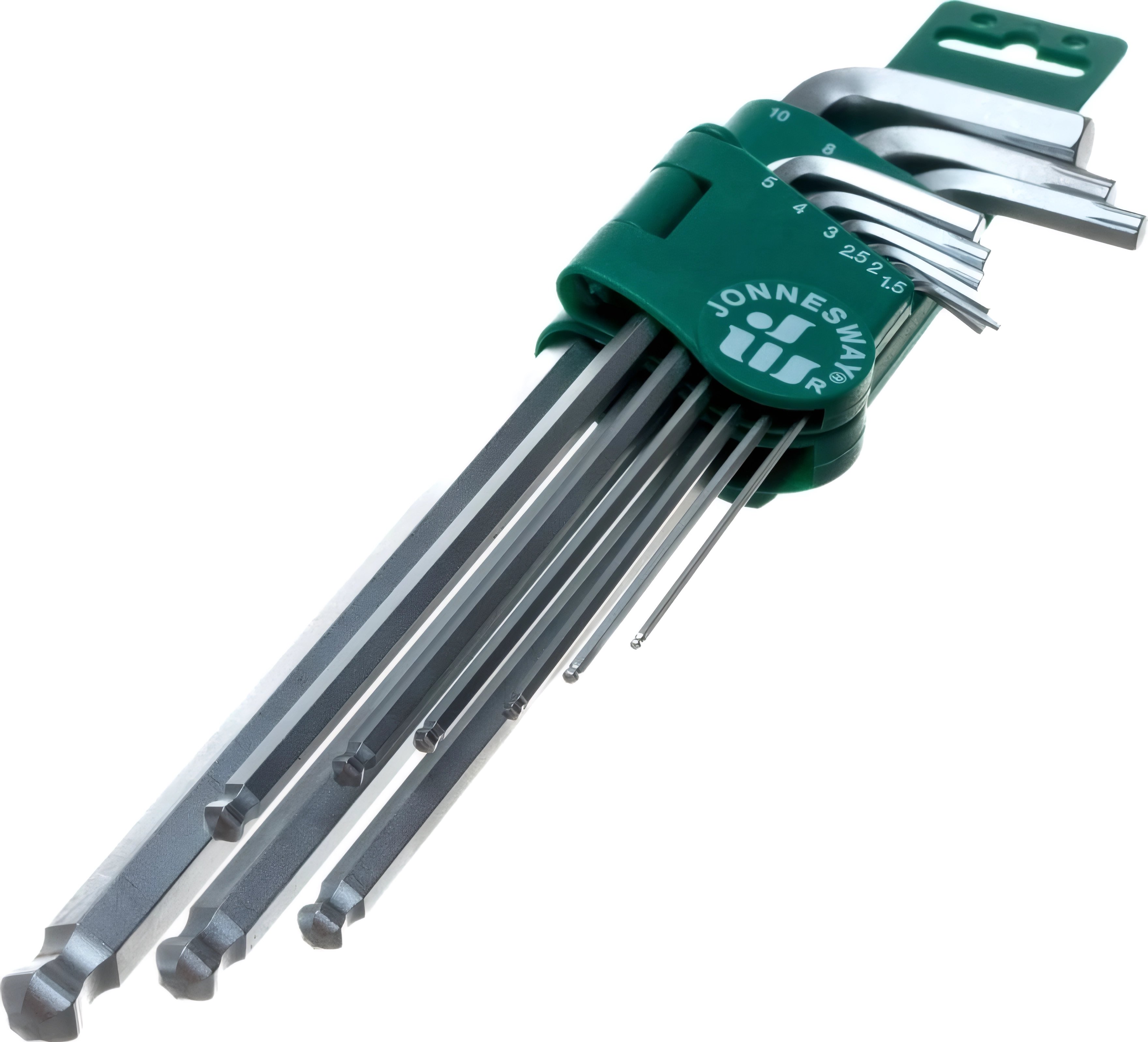 Набор ключей торцевых шестигранных удлиненных с шаром для изношенного крепежа Н1,5-Н10, 9 предметов JONNESWAY H23S109S