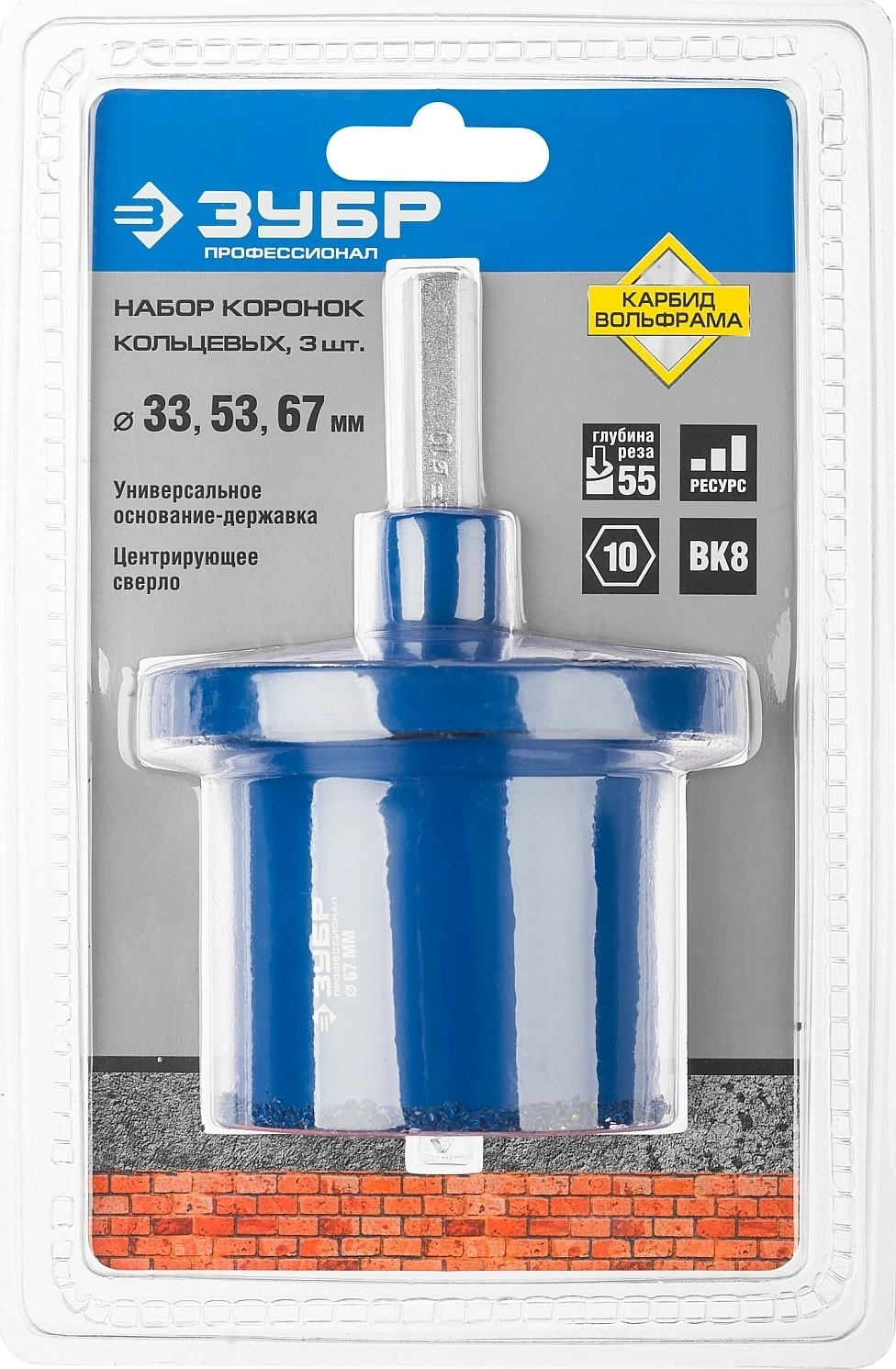 Набор кольцевых коронок ЗУБР d 33 53 67 мм карбид вольфрама 5 шт