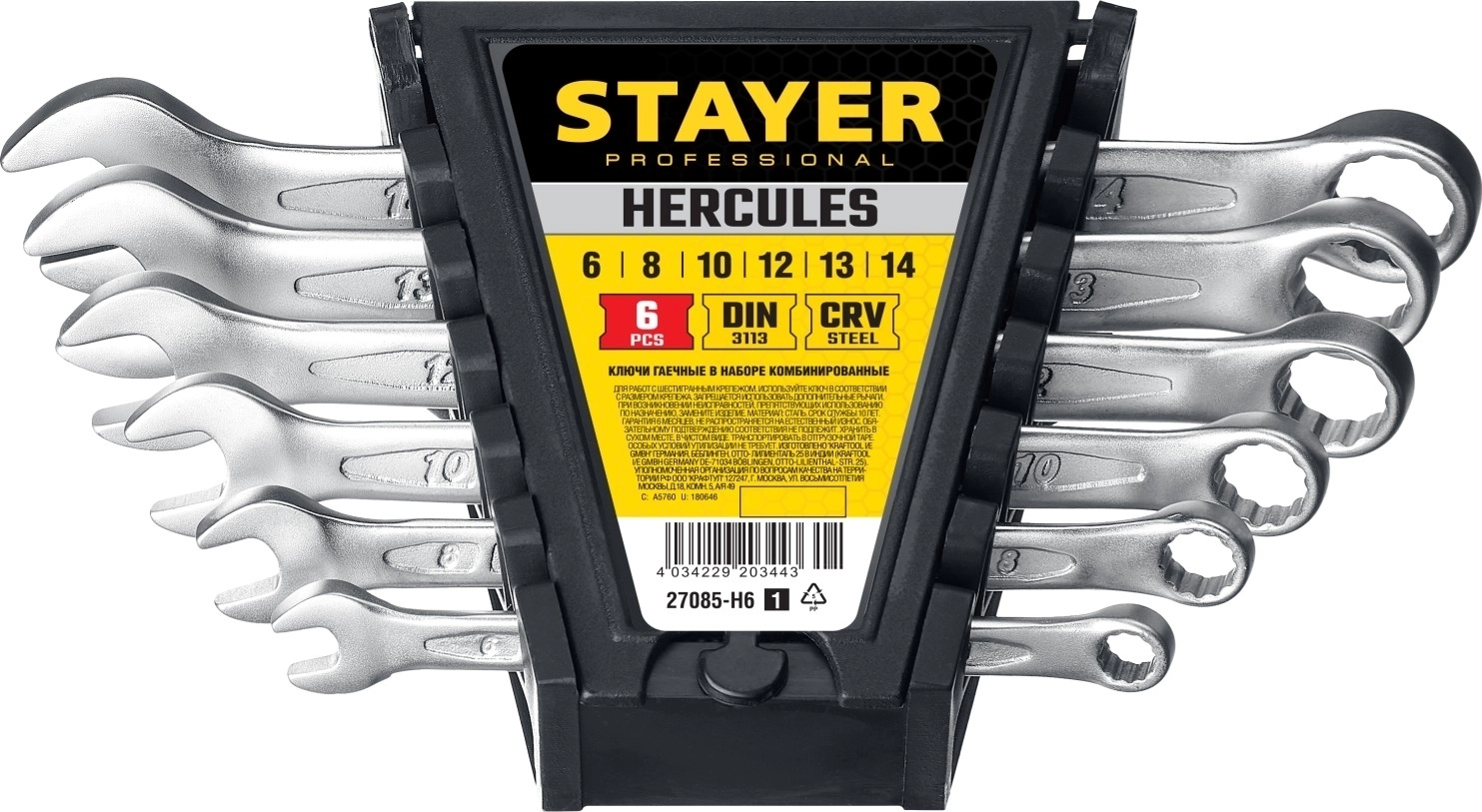 Набор комбинированных гаечных ключей Professional STAYER HERCULES 6 шт 6 - 14 мм