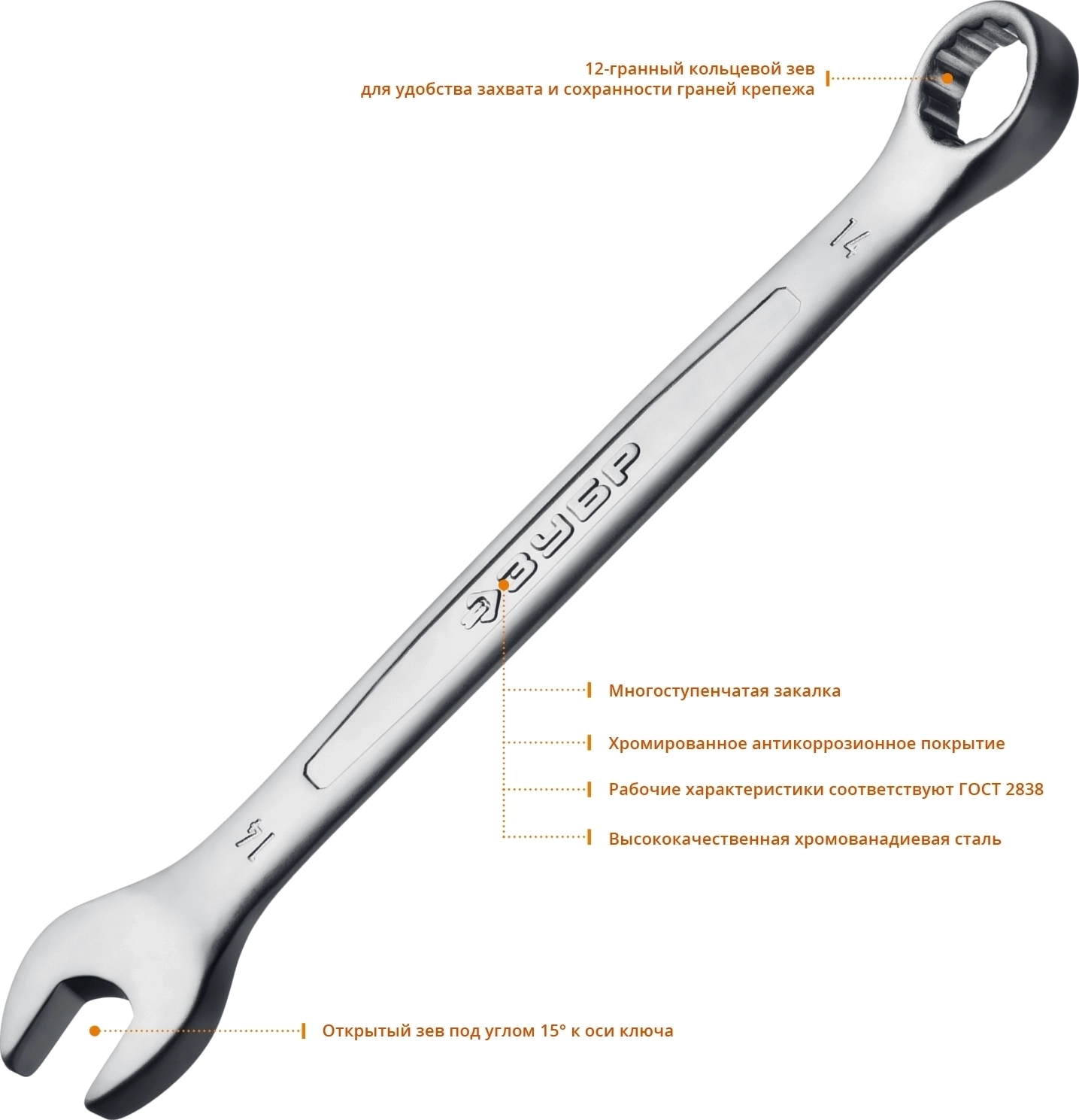 Ключ изготовлен из высококачественной хромованадиевой стали с многоступенчатой закалкой для увеличения ресурса ключа, а также обладает надежным хромированным покрытием для защиты от коррозии