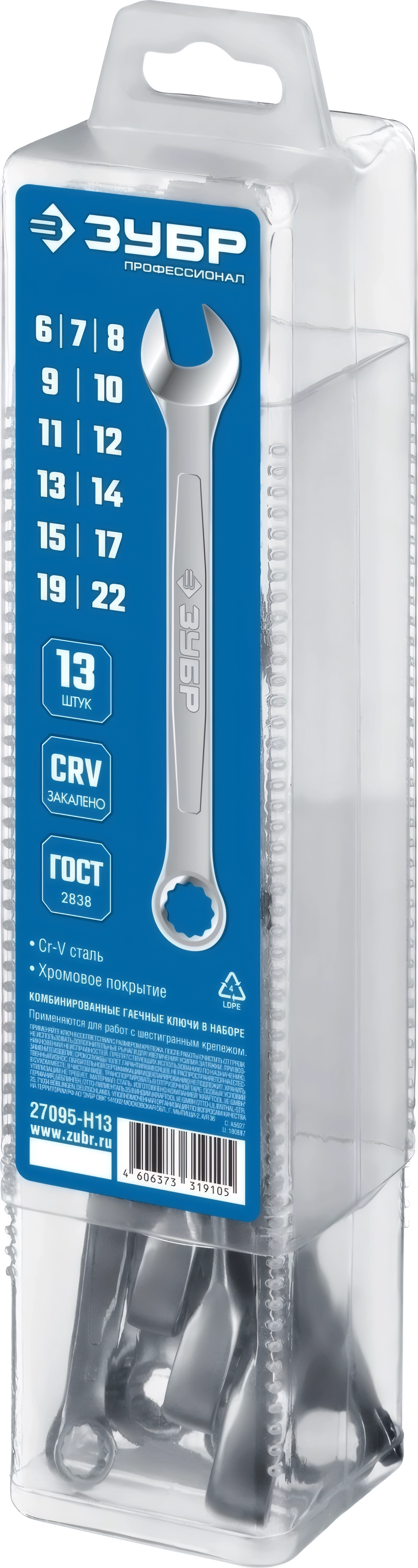 Набор комбинированных гаечных ключей ЗУБР 13 шт 6 - 22 мм