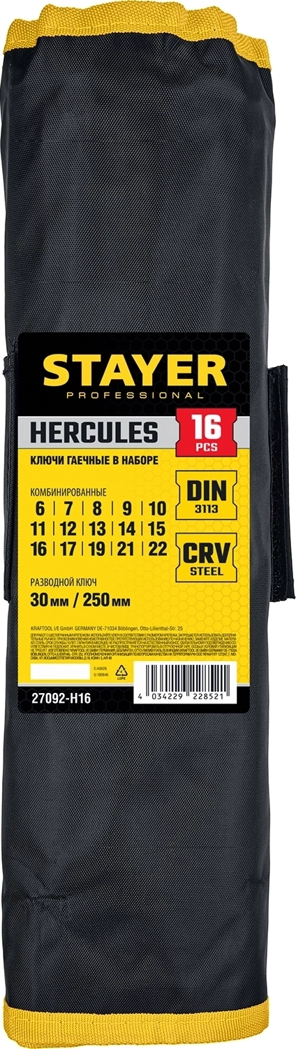 Набор комбинированных и разводных гаечных ключей Professional STAYER HERCULES 16 шт 6 - 30 мм