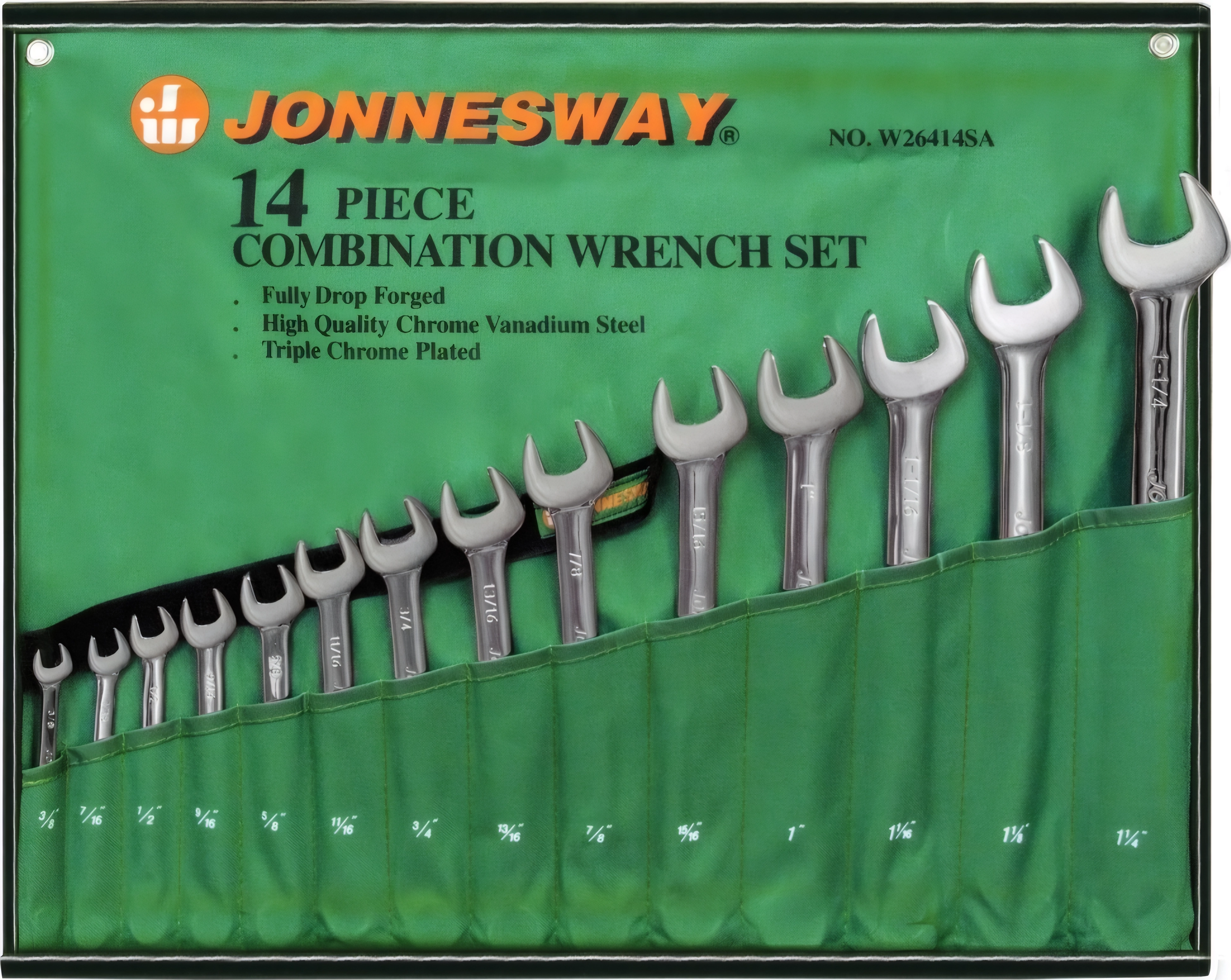 Набор комбинированных ключей Jonnesway W26414S (49030) - пожизненная гарантия, чехол для хранения, 14 ключей, страна-производитель - Тайвань, изготовление из хром-ванадиевой стали