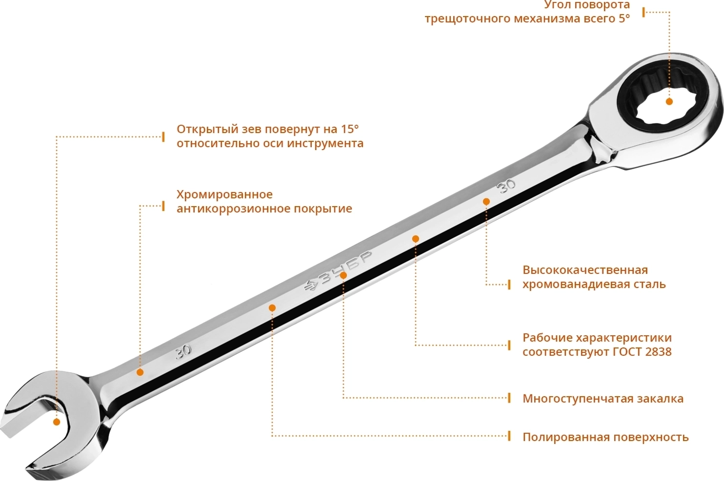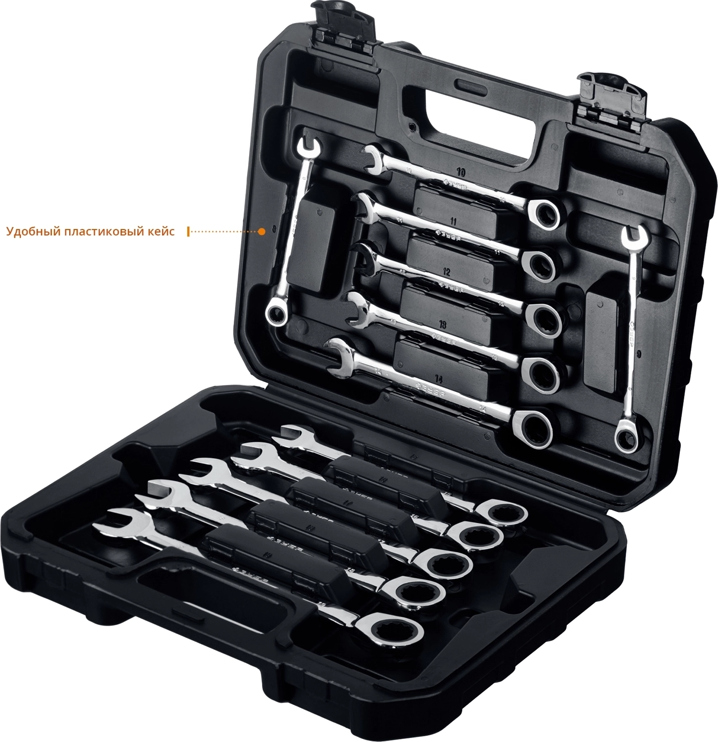 Набор комбинированных трещоточных гаечных ключей ЗУБР 12 шт 8 - 19 мм