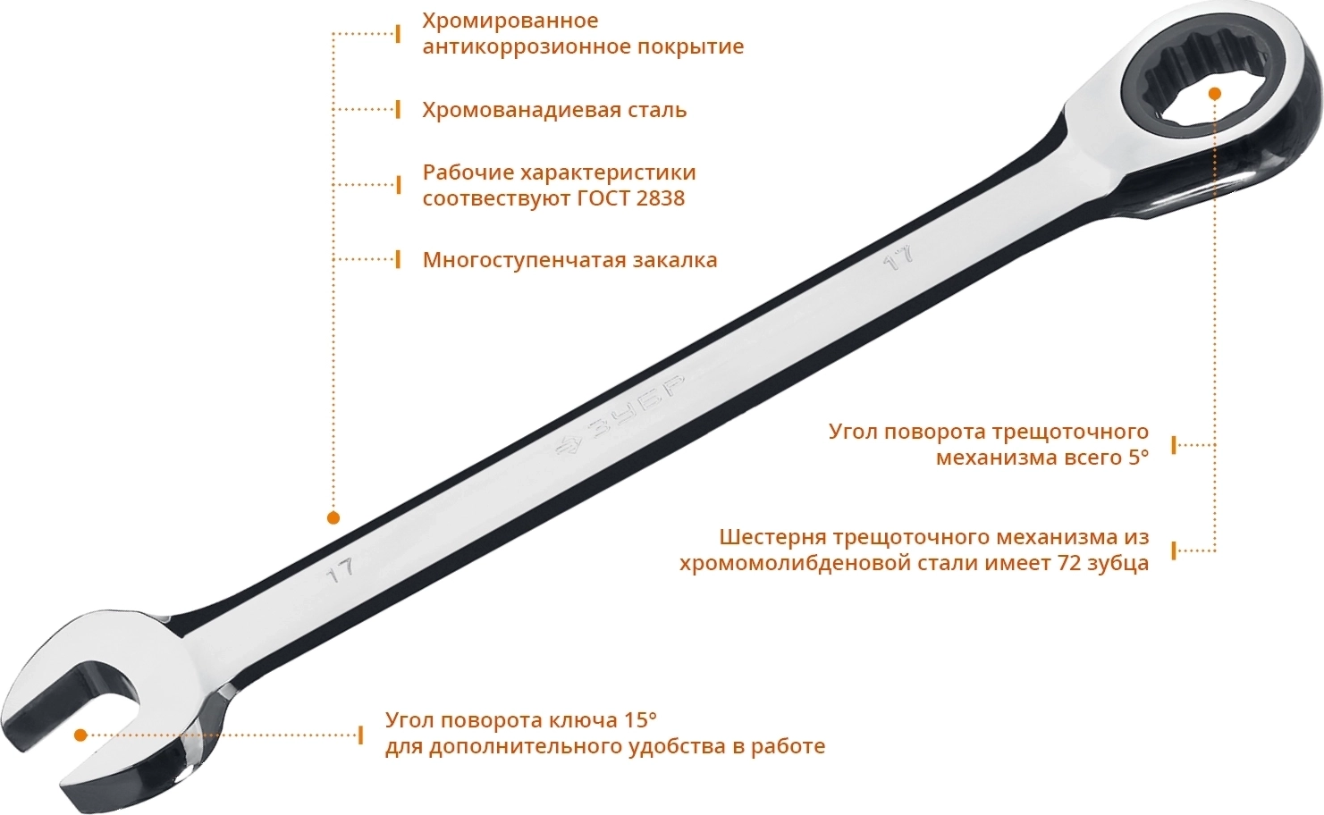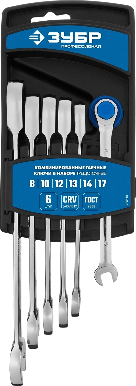 Набор комбинированных трещоточных гаечных ключей ЗУБР 6 шт 8 - 17 мм