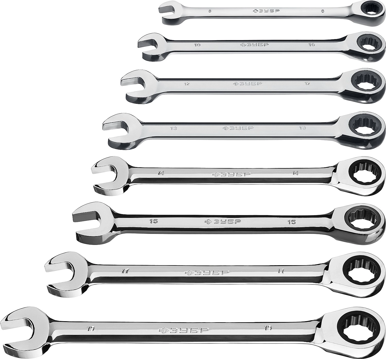 Набор комбинированных трещоточных гаечных ключей ЗУБР 8 шт 8 - 19 мм