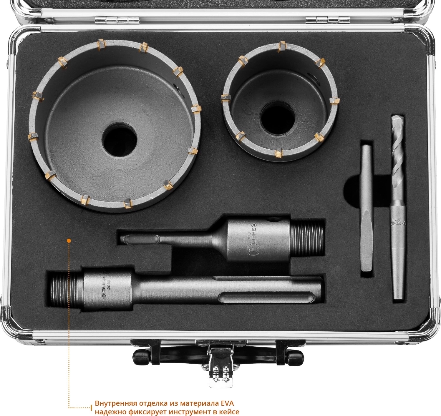 Набор коронок по бетону с оснасткой ЗУБР d 68 100 мм Alu кейс