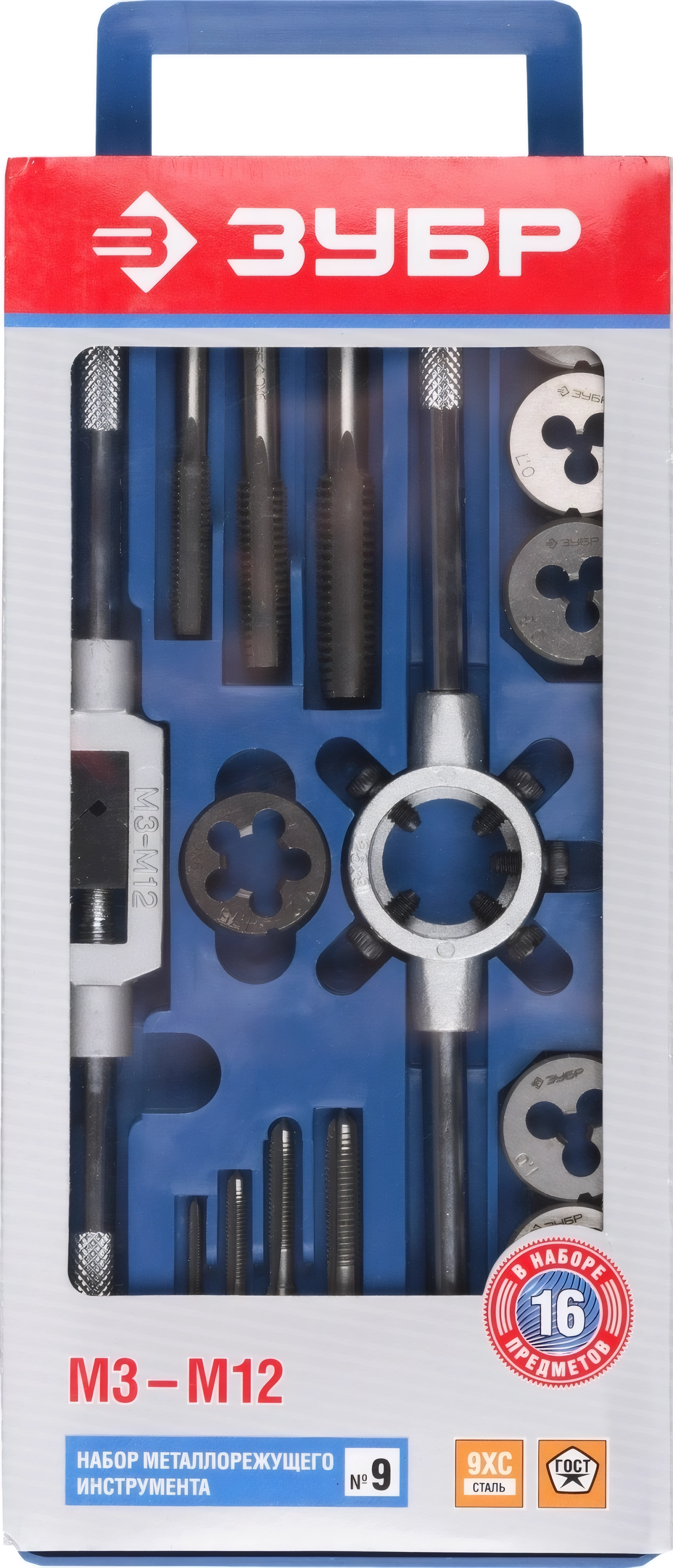 Набор метчиков и плашек в пластиковом боксе ЗУБР 16 предм., сталь 9ХС