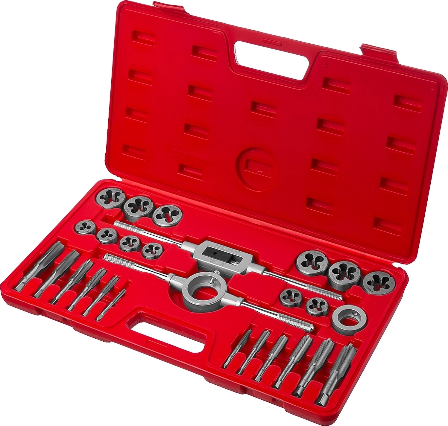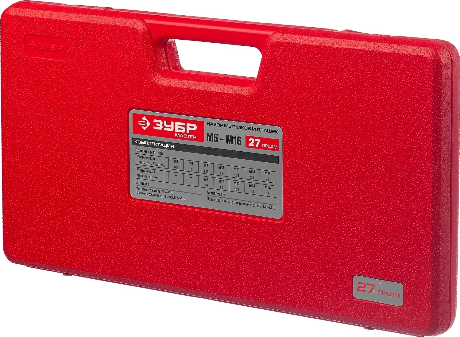 Набор метчиков и плашек в пластиковом боксе ЗУБР 27 предм., сталь 9ХС