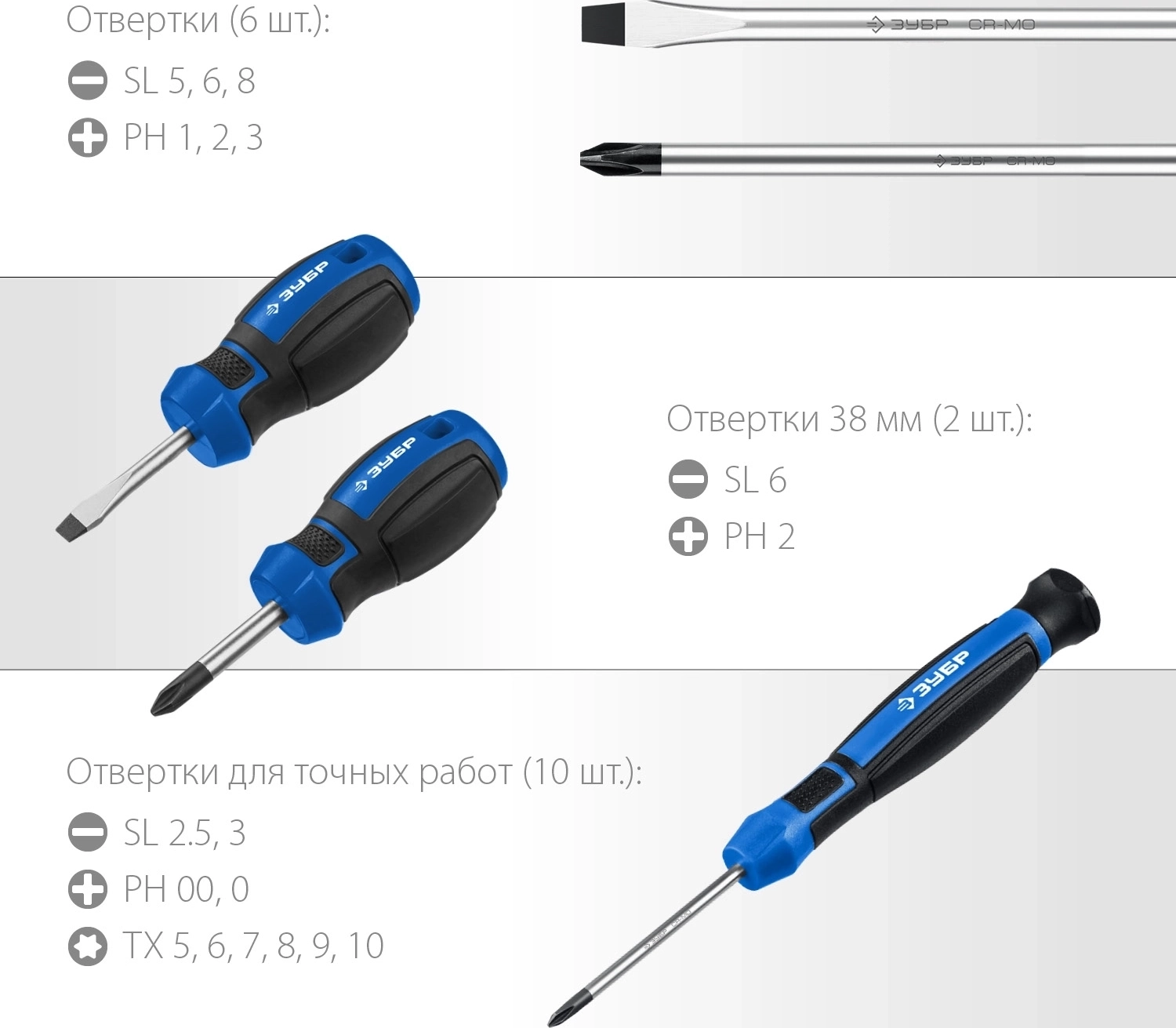 Универсальный набор для мастерской. Большой выбор отверток для всех видов слесарных и точных работ