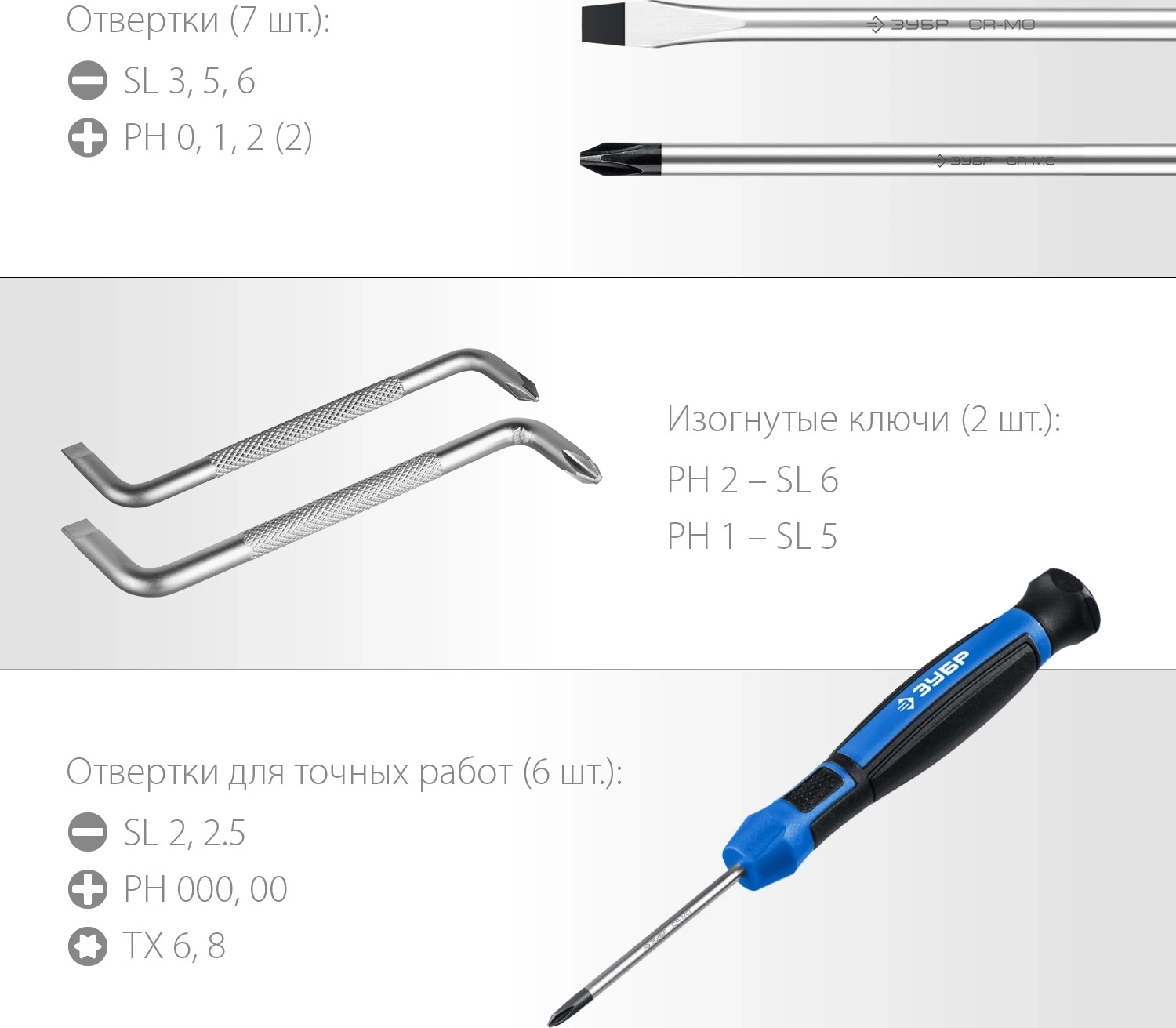 - Стержни отверток и биты изготовлены из хромомолибденовой стали и закалены по специальной технологии