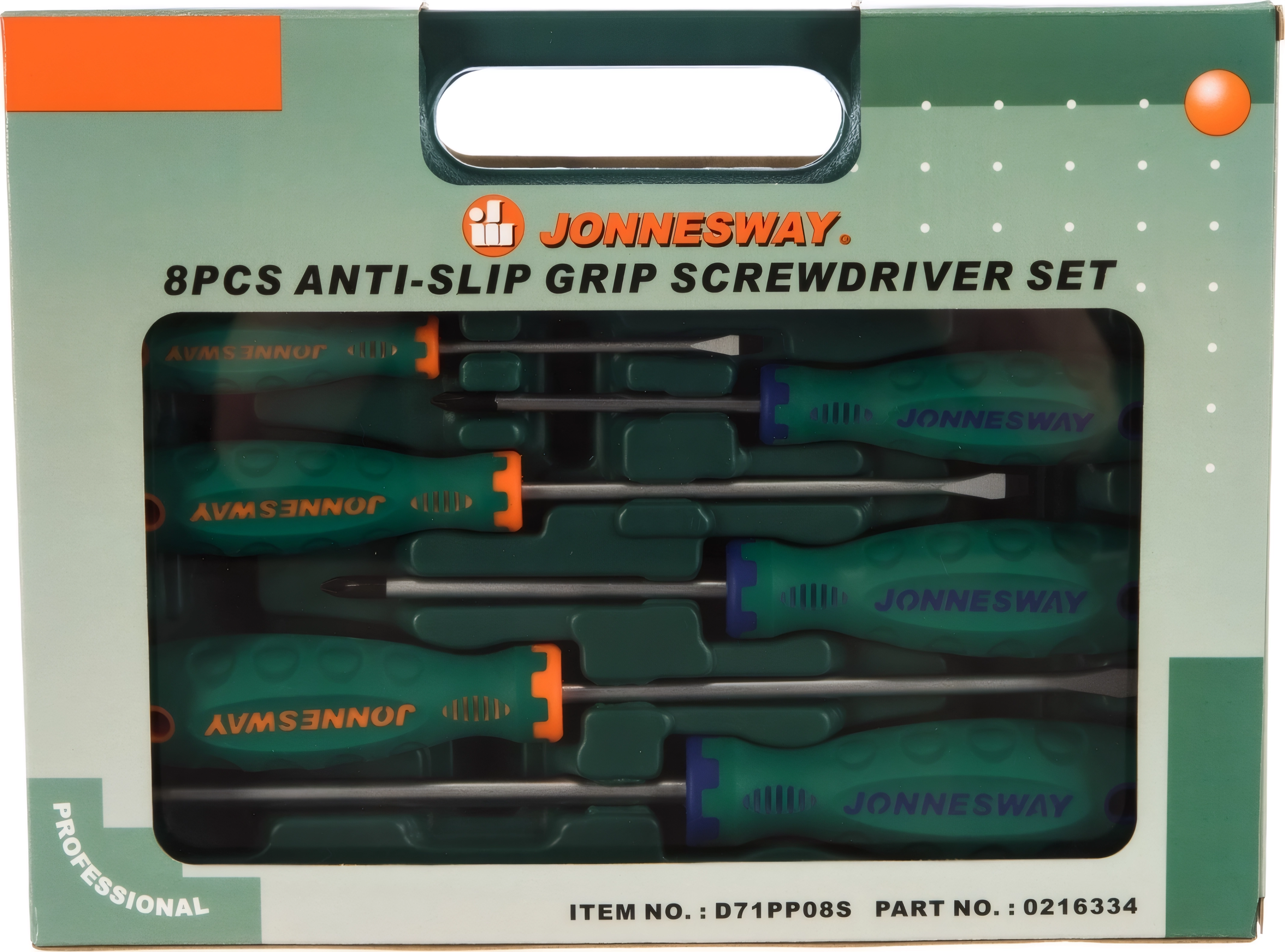 Набор отверток шлиц и крест SL 6,5х38 - 6,5х150, PH#1-3, 8 предметов JONNESWAY D71PP08S