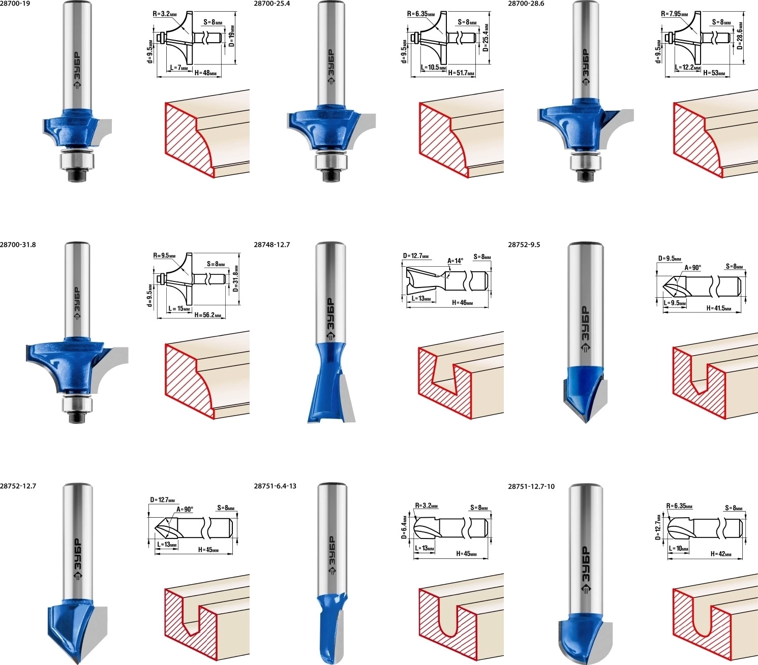 Набор фрез отлично подходит для профилирования кромок, изготовления декоративных пазов и рисунков, фрезерования канавок при работе с различными видами древесины.