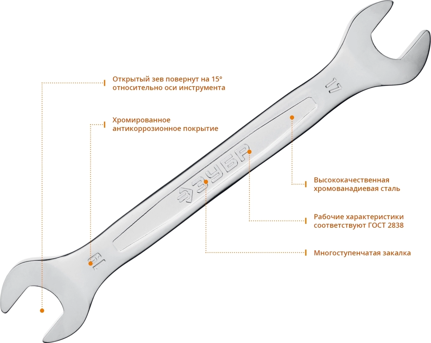 Ключ изготовлен из высококачественной хромованадиевой стали с многоступенчатой закалкой для увеличения ресурса ключа, а также обладает надежным хромированным покрытием для защиты от коррозии