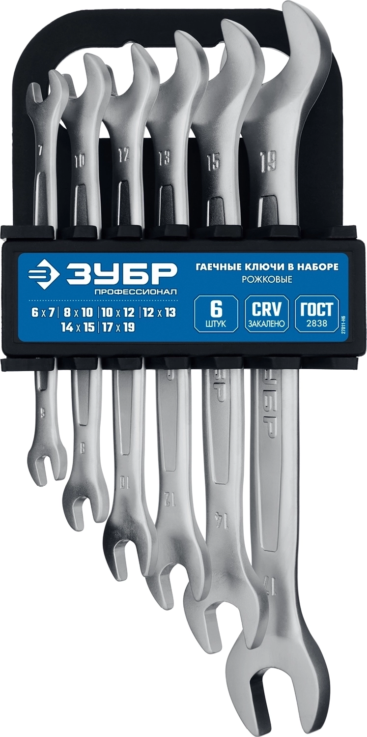 Набор рожковых гаечных ключей ЗУБР 6 шт 6 - 19 мм