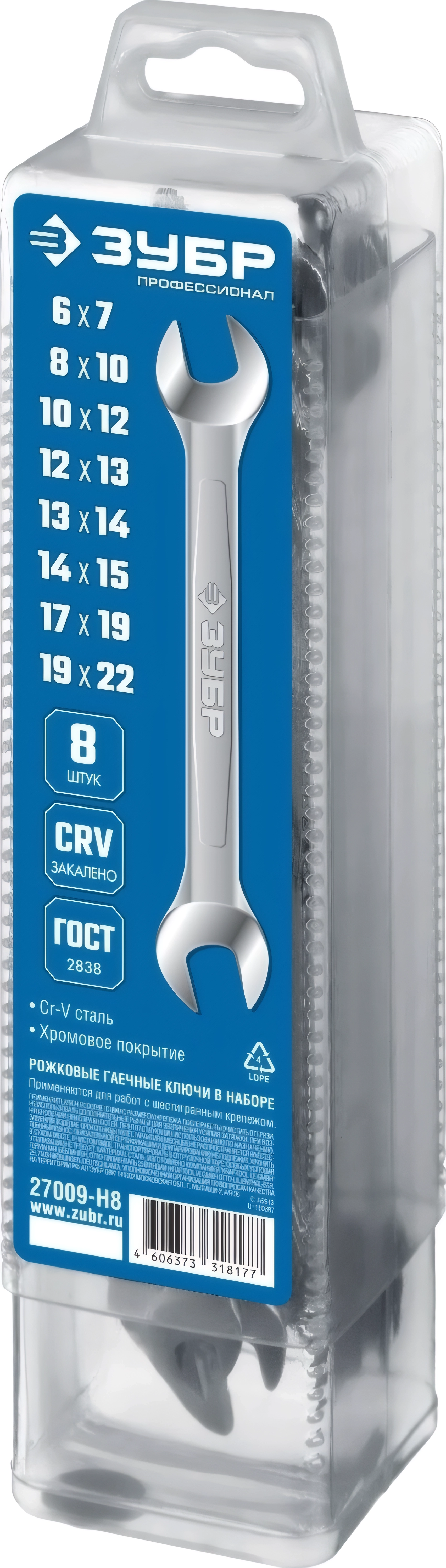 Набор рожковых гаечных ключей ЗУБР 8 шт 6 - 22 мм