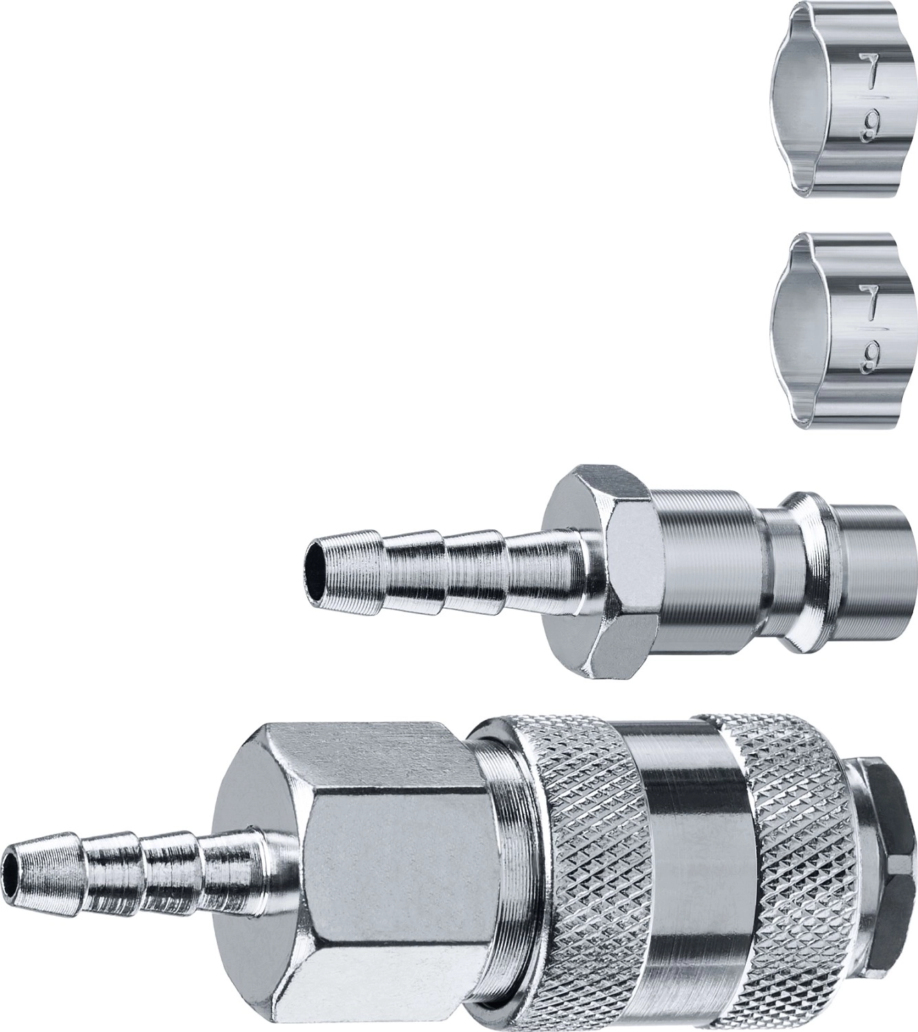 Набор соединений ЗУБР штуцер ″елочка″ 6 мм - рапид муфта + рапид штуцер-штуцер 6 мм + обжимные хомуты 2 шт