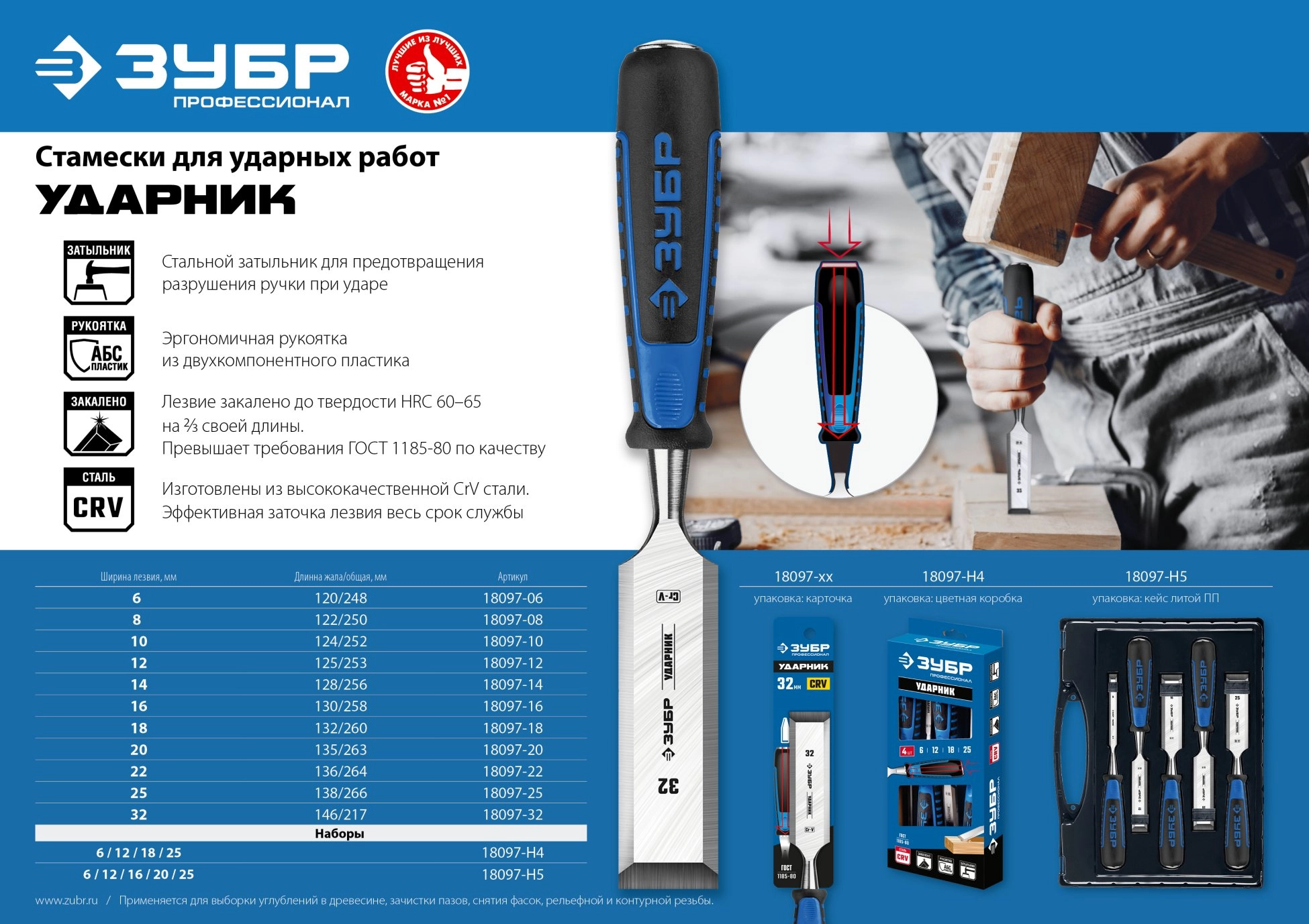 Набор стамесок-долот ЗУБР Ударник 4 предм