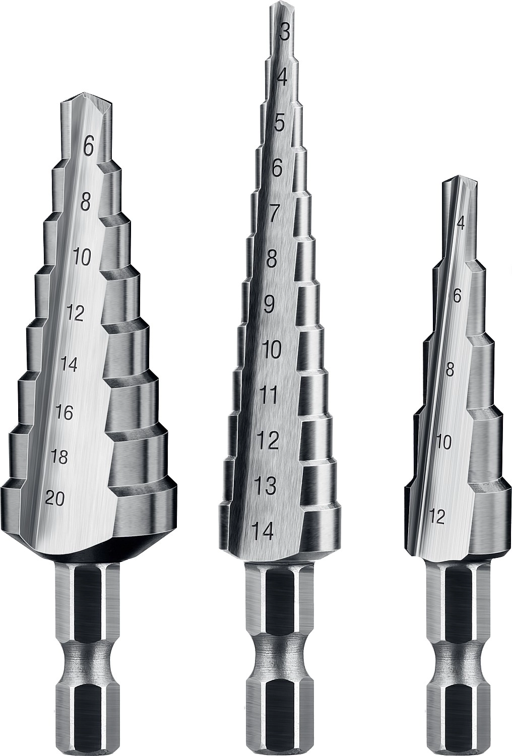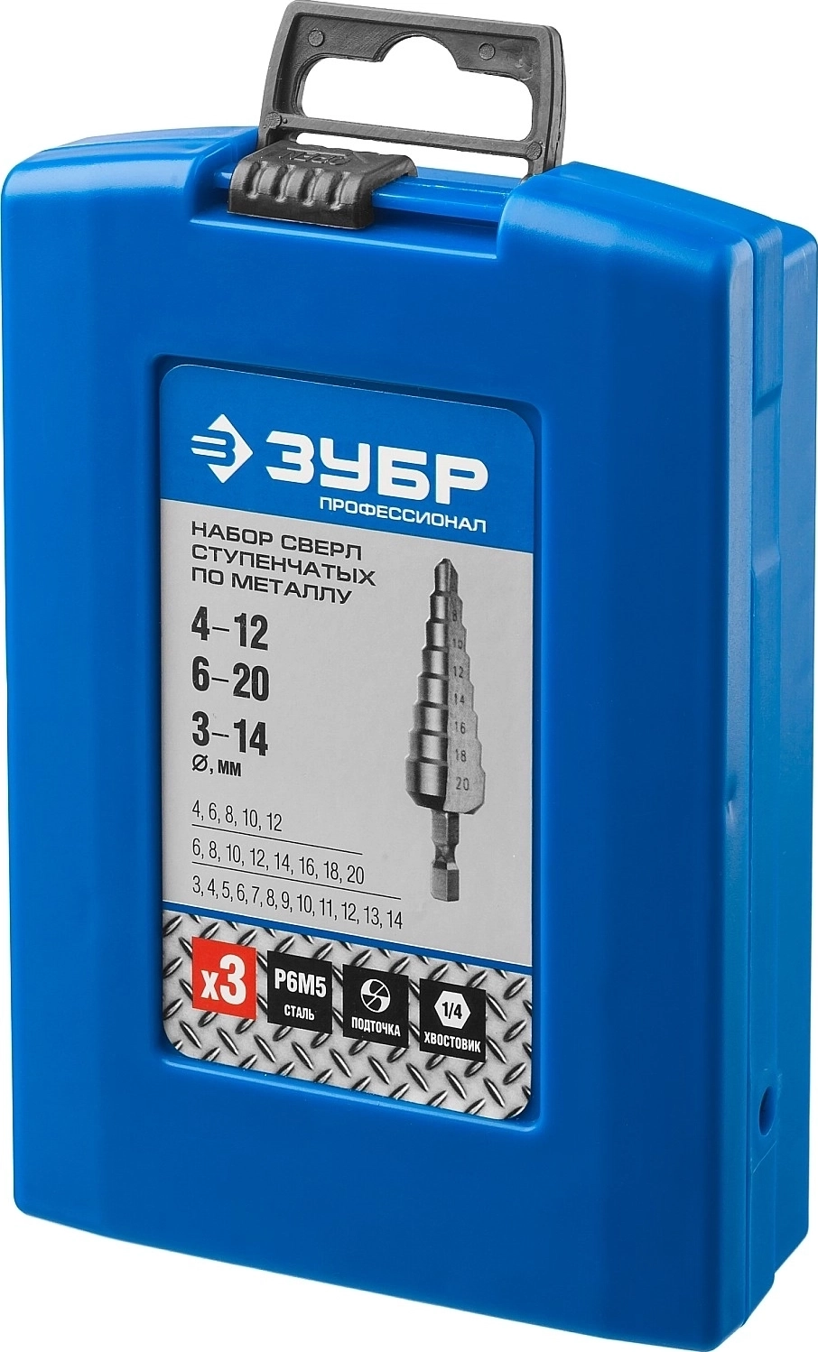 Набор ступенчатых сверл ЗУБР 3-20 мм 3 шт сталь Р6М5