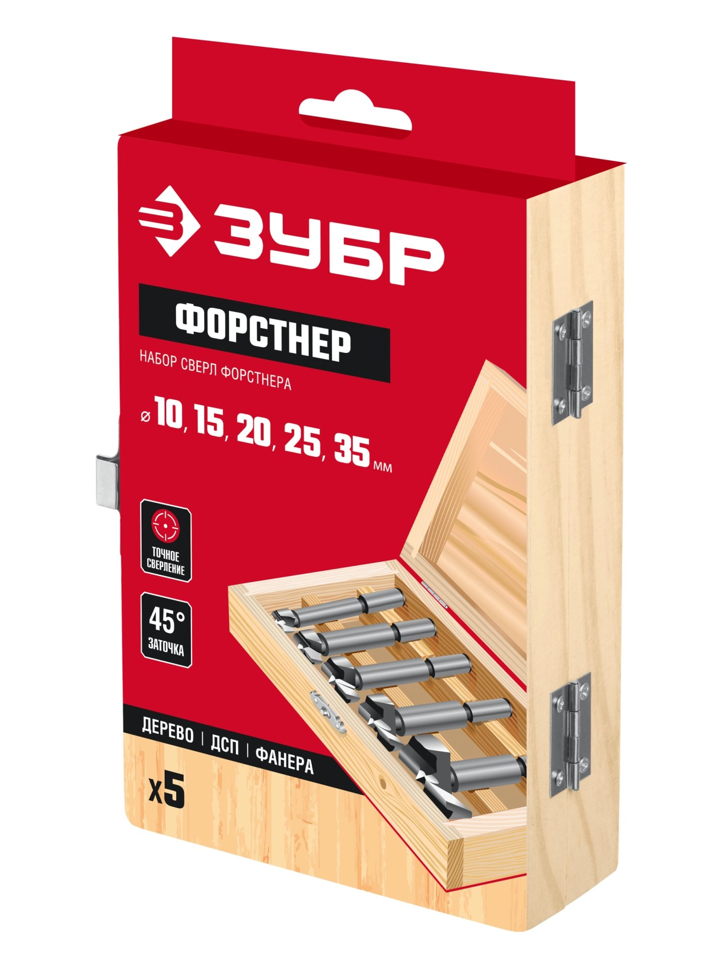 Набор сверл Форстнера ДСП ЗУБР 10-15-20-25-35 мм (5 шт)