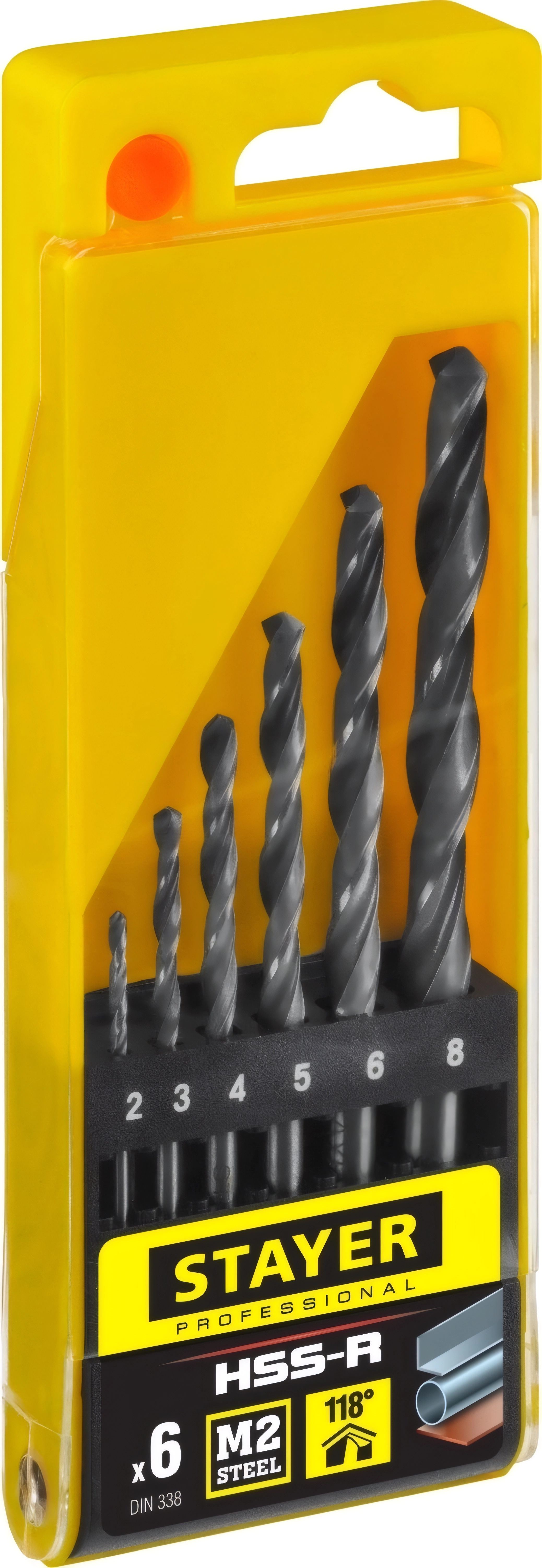 Набор сверл по металлу Professional STAYER HSS-R 6 шт (2-8 мм) быстрорежущая сталь P6M5 класс В