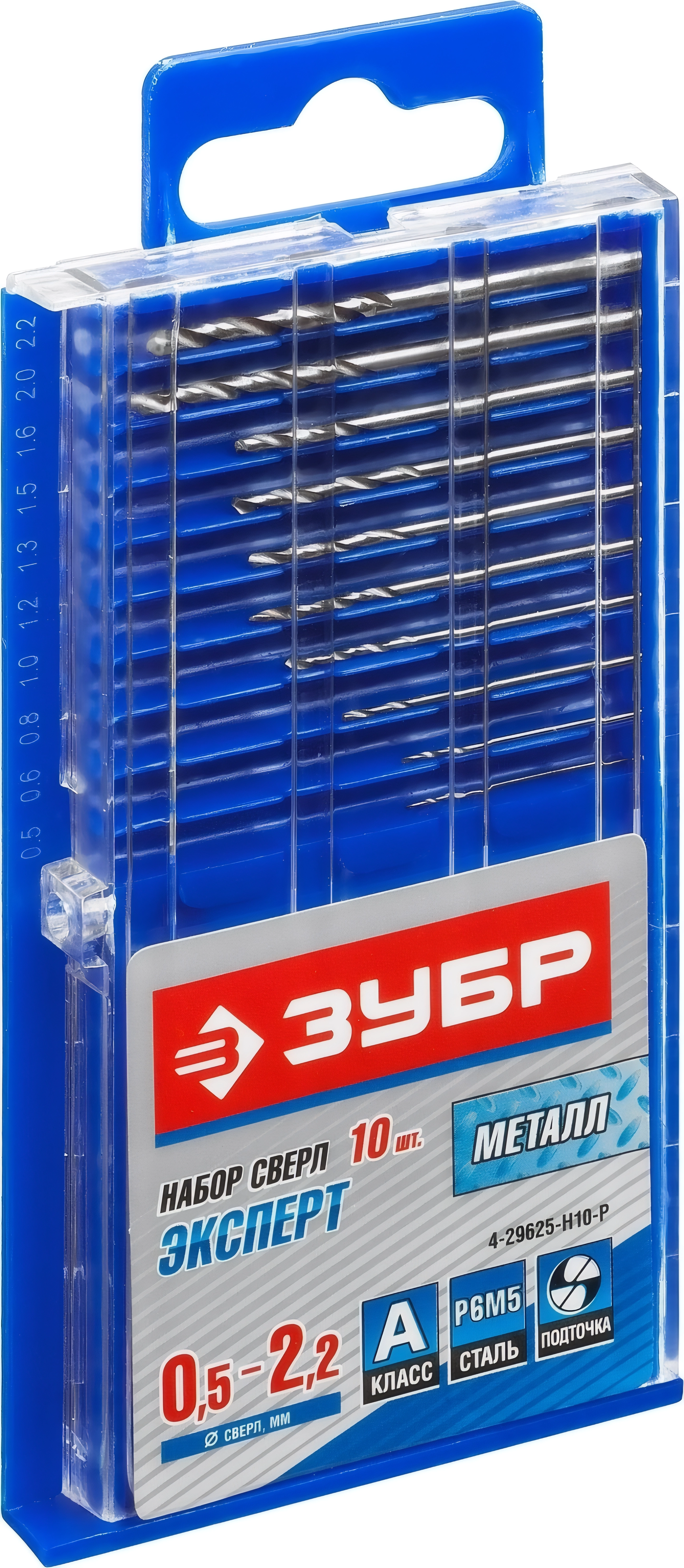 Набор сверл по металлу ЗУБР ПРОФ-А 10 шт 0.5-2.2 мм сталь Р6М5 класс А для печатных плат