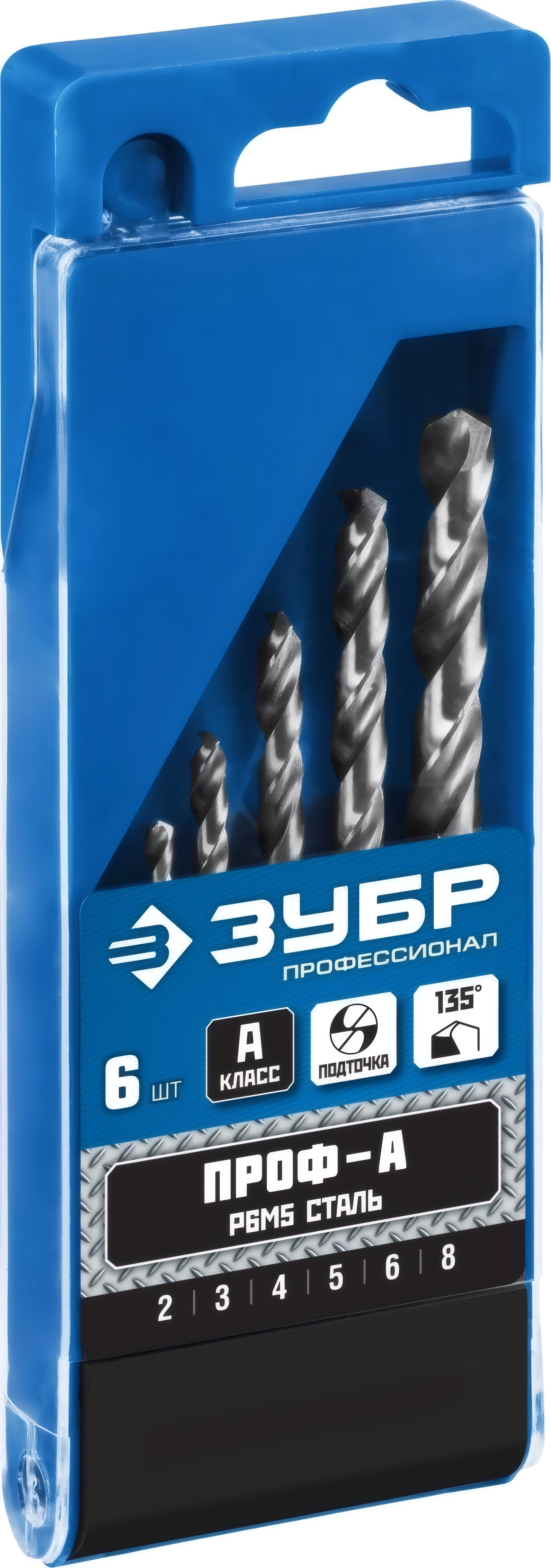 Набор сверл по металлу ЗУБР ПРОФ-А 6 шт 2-8 мм сталь Р6М5 класс А