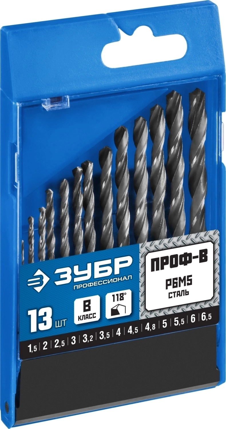 Набор сверл по металлу ЗУБР ПРОФ-В 13 шт 1.5-6.5 мм сталь Р6М5 класс В