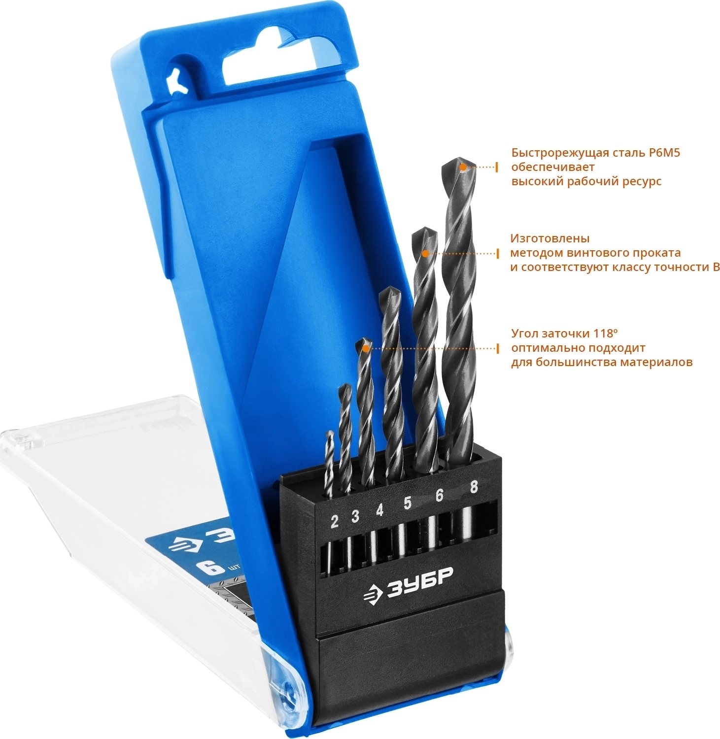 Набор сверл по металлу ЗУБР ПРОФ-В 6 шт 2-8 мм сталь Р6М5 класс В