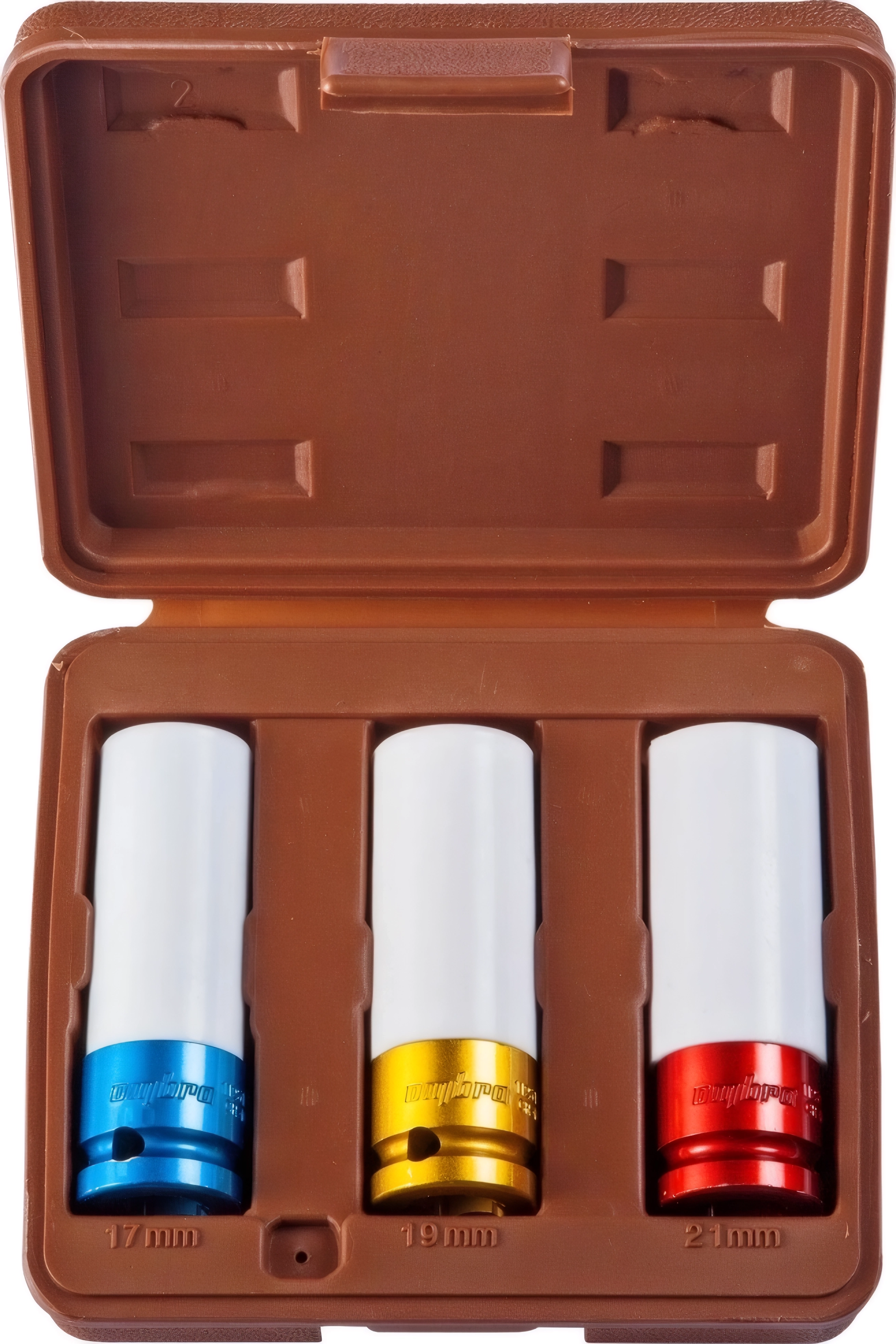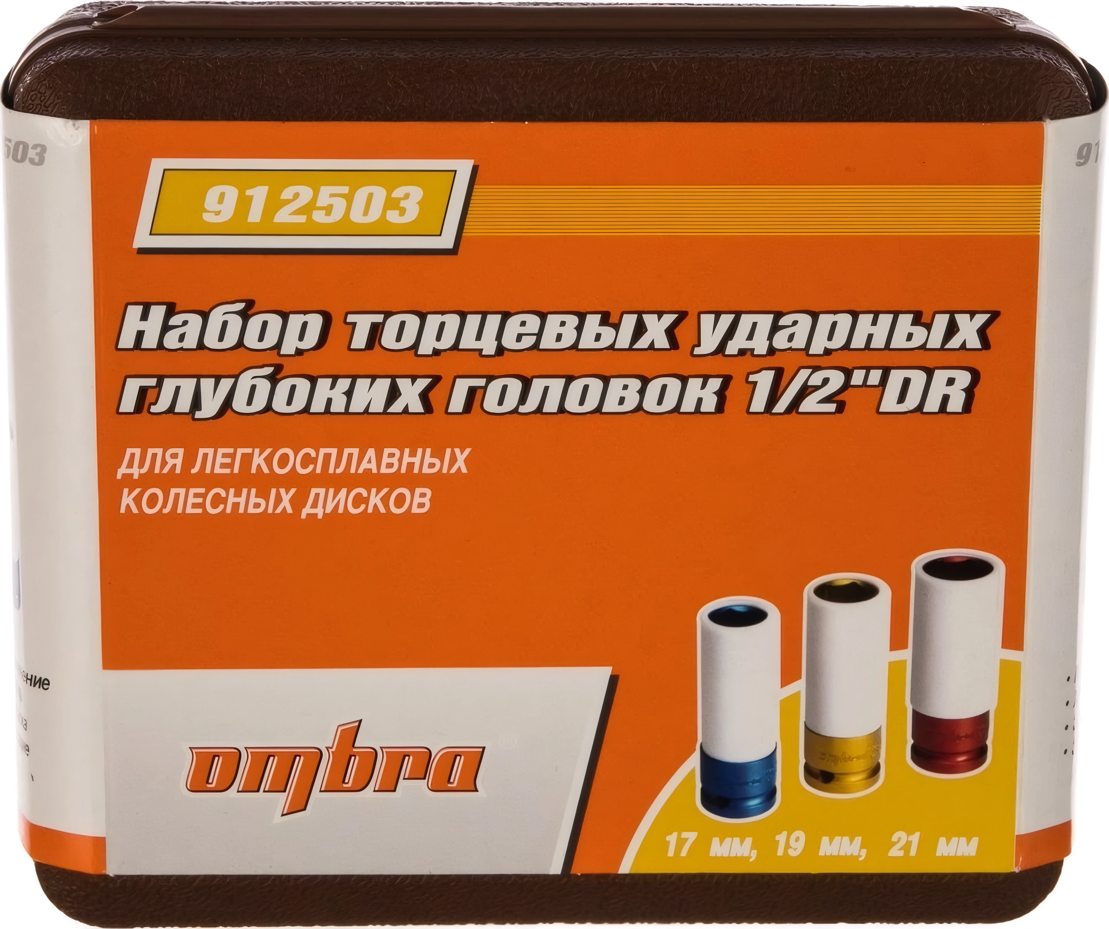 Набор торцевых ударных глубоких головок Ombra 912503 (55510) - 1/2 дюйма DR, 3 предмета, 6-гранные, 17, 19, 21 мм, хромомолибденовая сталь, электрохимическая окраска, пожизненная гарантия, производство - Тайвань