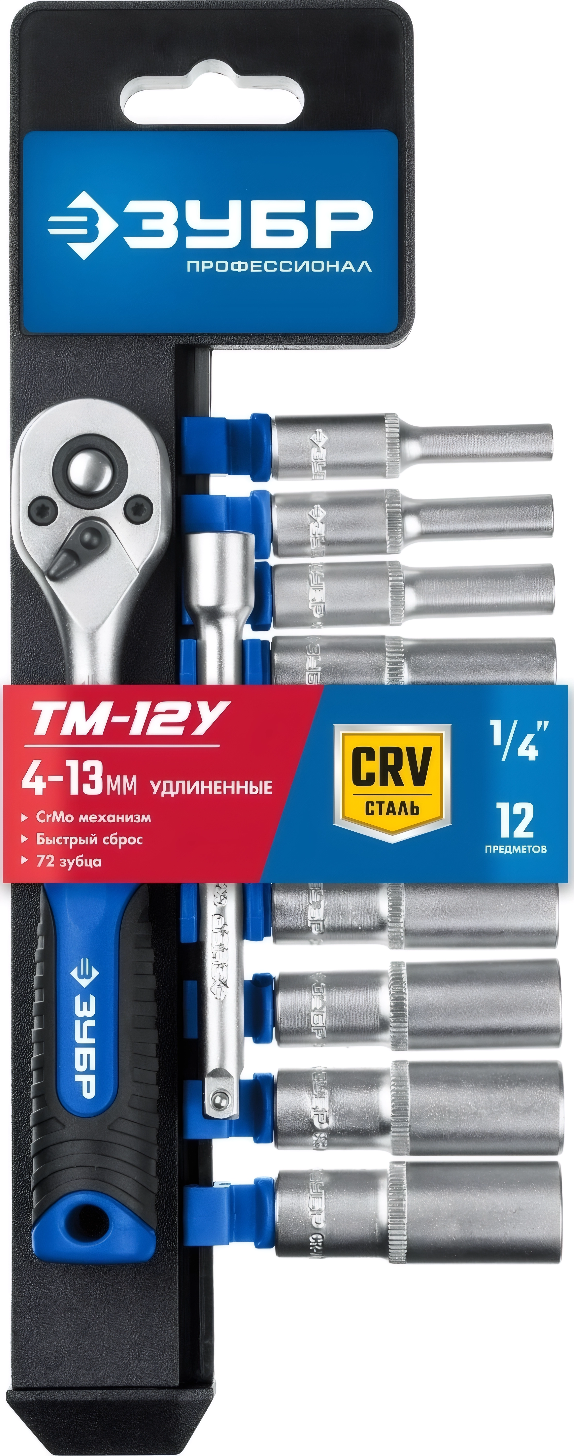 Набор торцовых головок ЗУБР ТМ-12У 12 предм. 1/4″