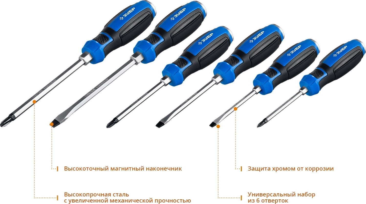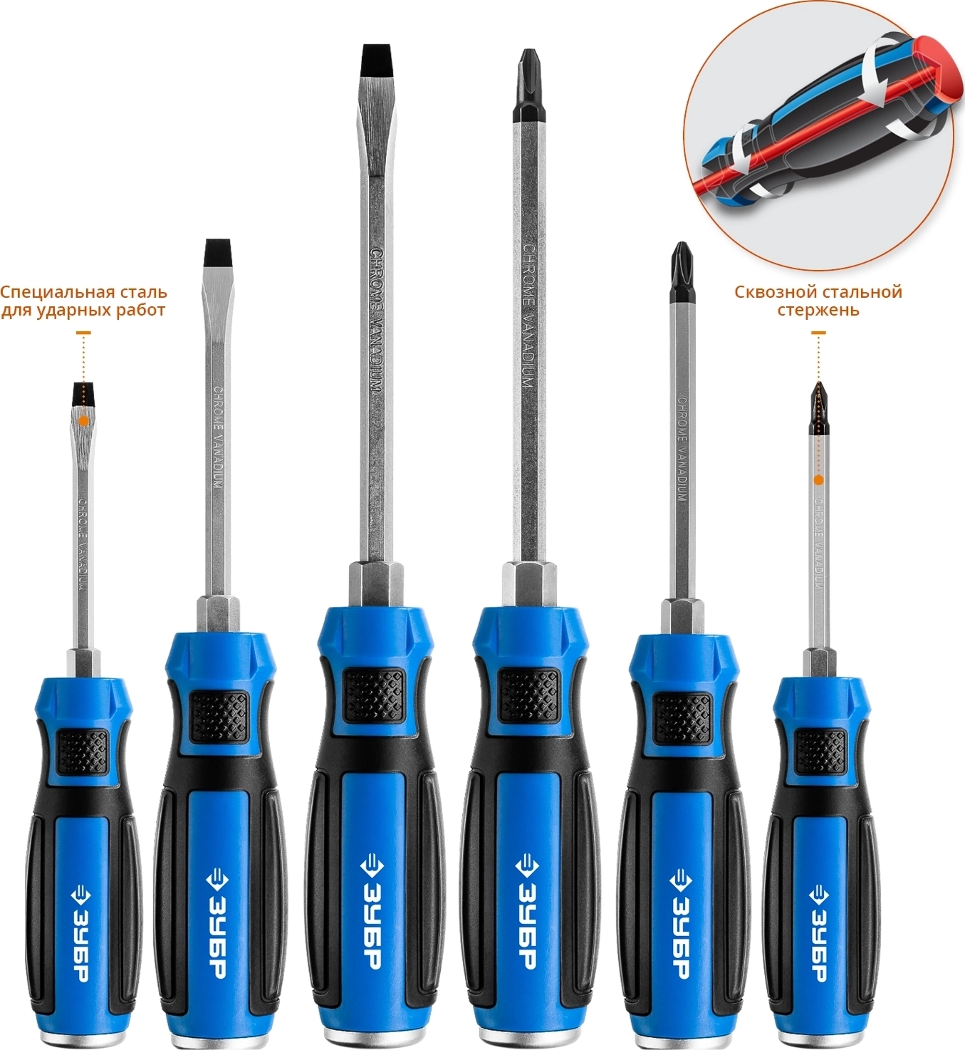 Набор ударных отверток ЗУБР Ударник 6 предм.