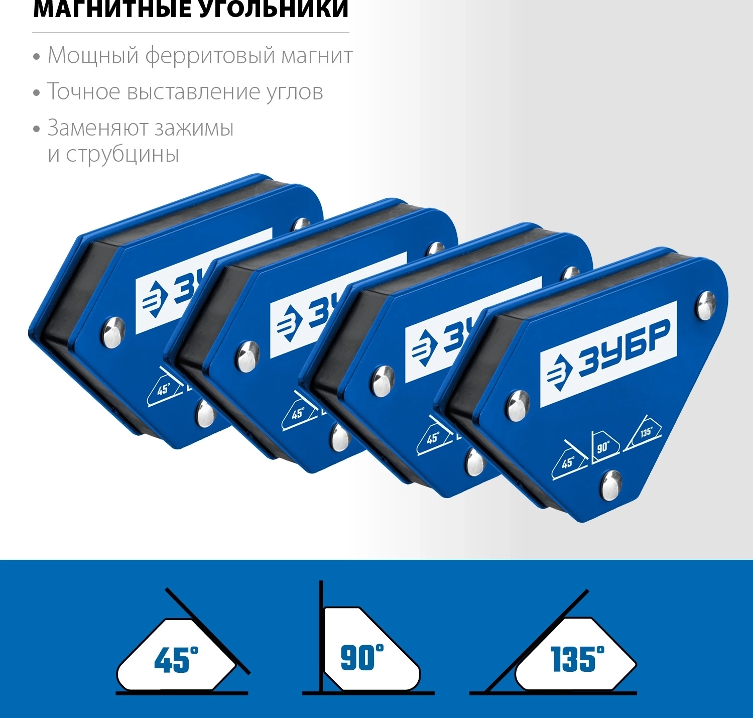 Набор угольников магнитных для сварочных работ ЗУБР УМ-3 4 шт 4 кг