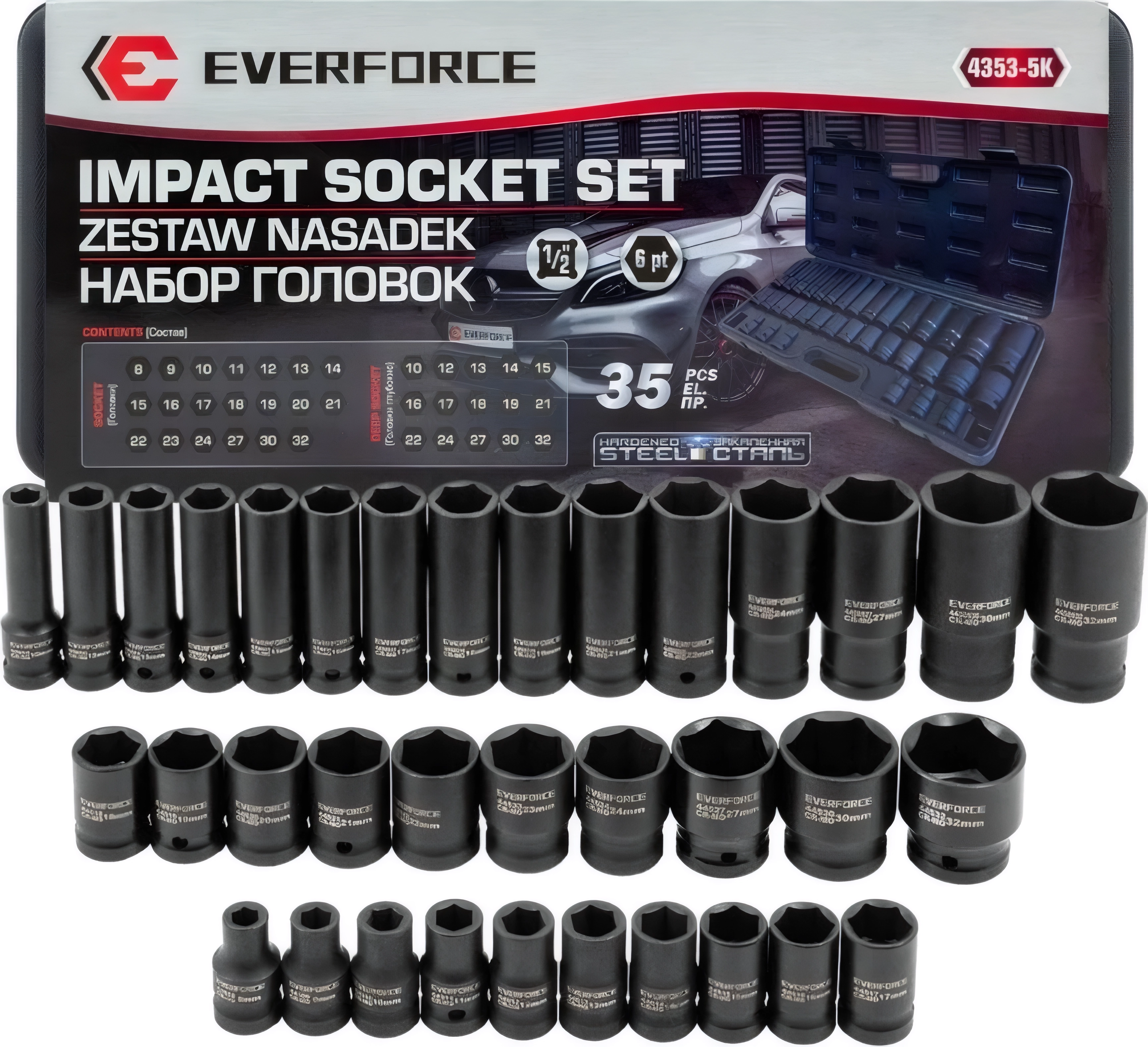 Набор головок ударных комбинированных , 1/2"DR, 8-32мм, 6гр, 35 предм. арт. 121531