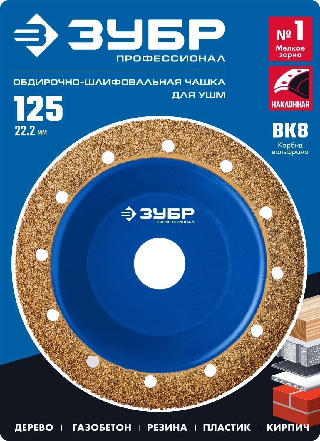 Наклонная обдирочно-шлифовальная чашка ЗУБР №1 мелкое зерно 125 мм ВК8