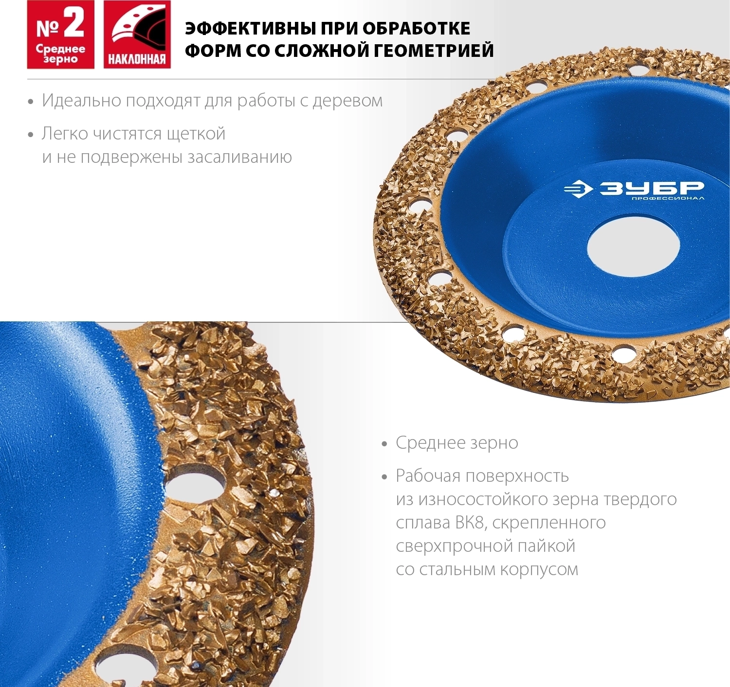 Обдирочно-шлифовальные чашки ЗУБР Профессионал изготовлены из износостойкого зерна твердосплава ВК8 скрепленного сверхпрочной пайкой с корпусом чашки благодаря чему обладают уникальным сверхвысоким ресурсом.