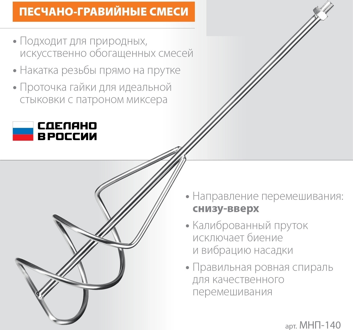 Насадка с лопастями для перемешивания песчано-гравийных смесей. Используется совместно с ручными миксерами ЗУБР ЗМР-1200Э-1, МР-1050-1, МР-1100, МР-1400-2 и МР-1600-2. Сделано в России